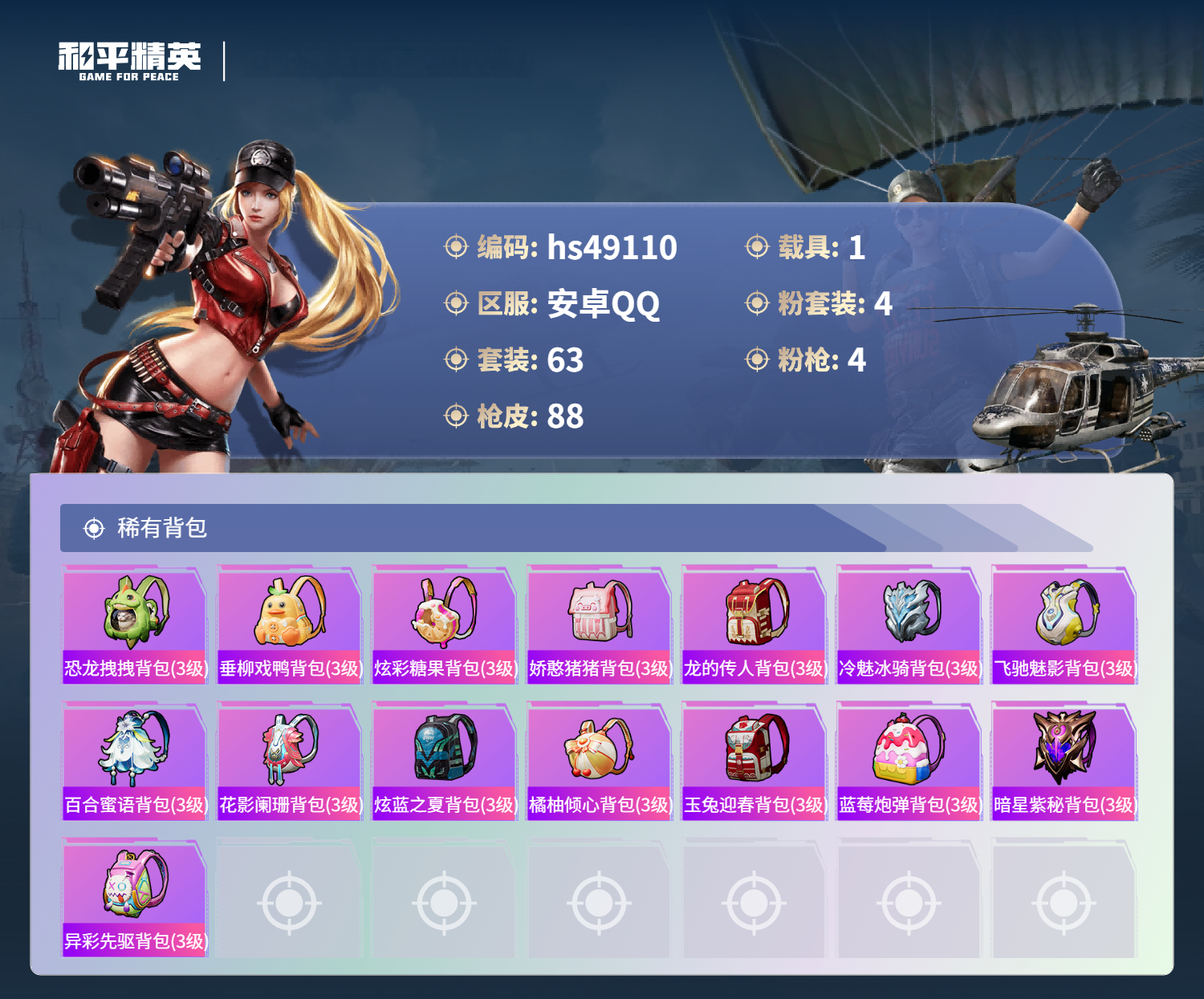 游戏区服:和平精英 / 安卓系统 / QQ账号