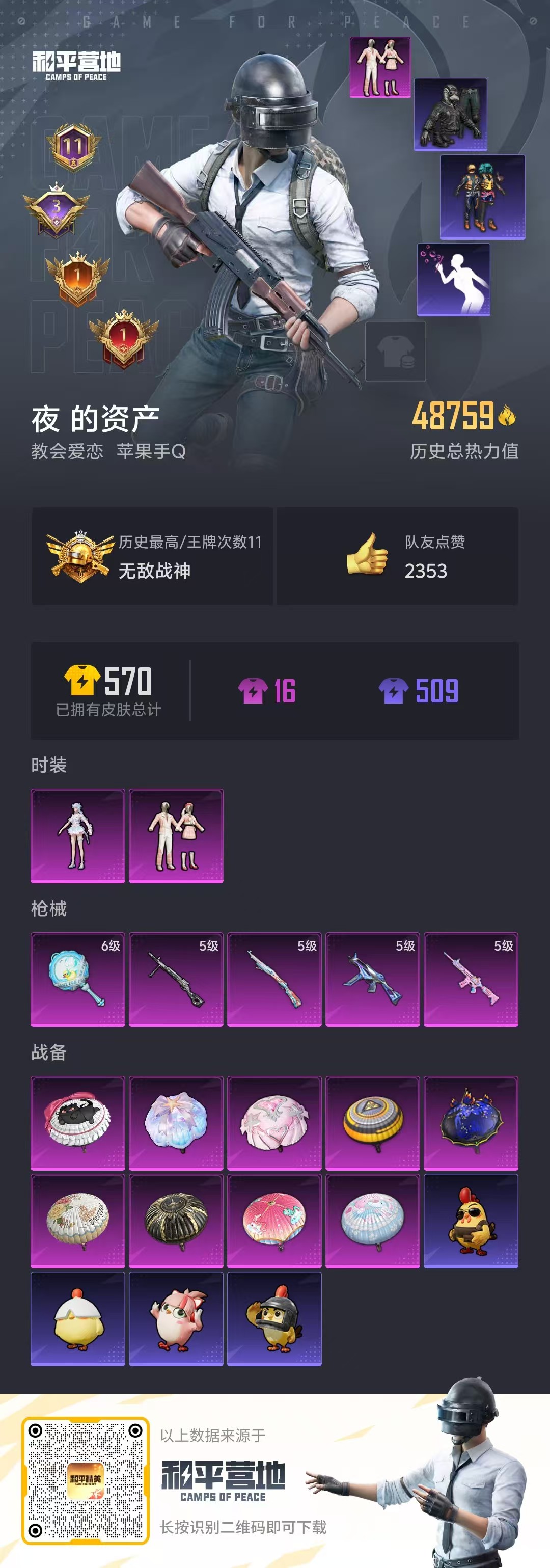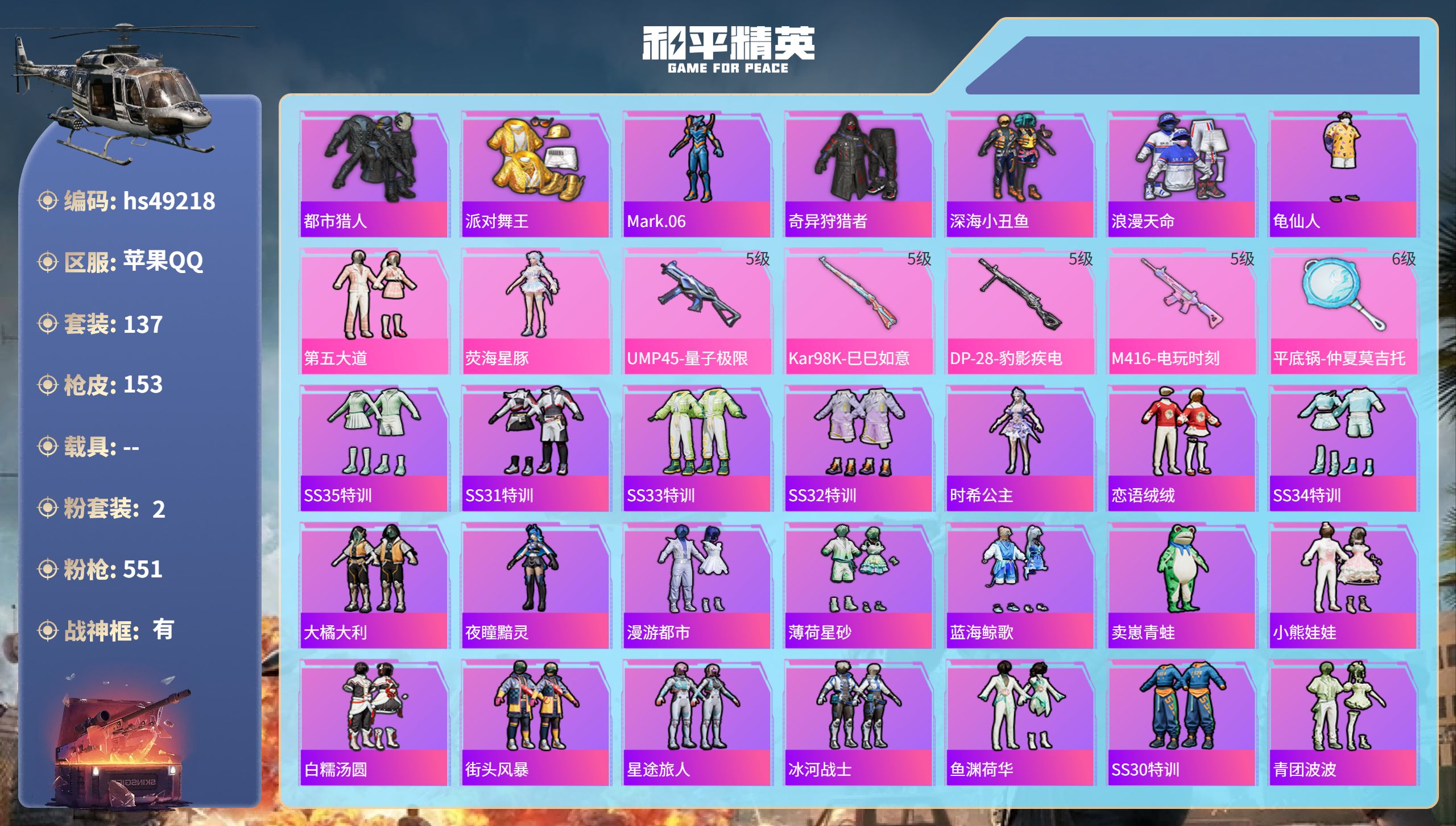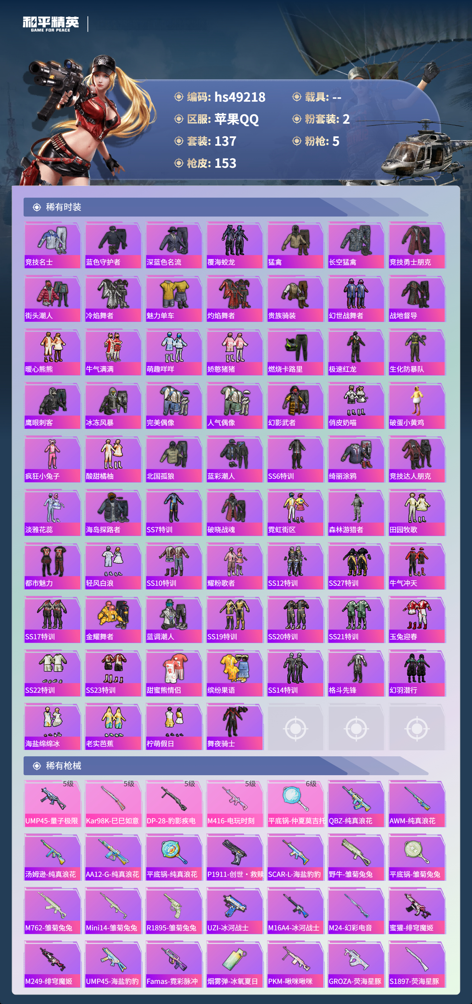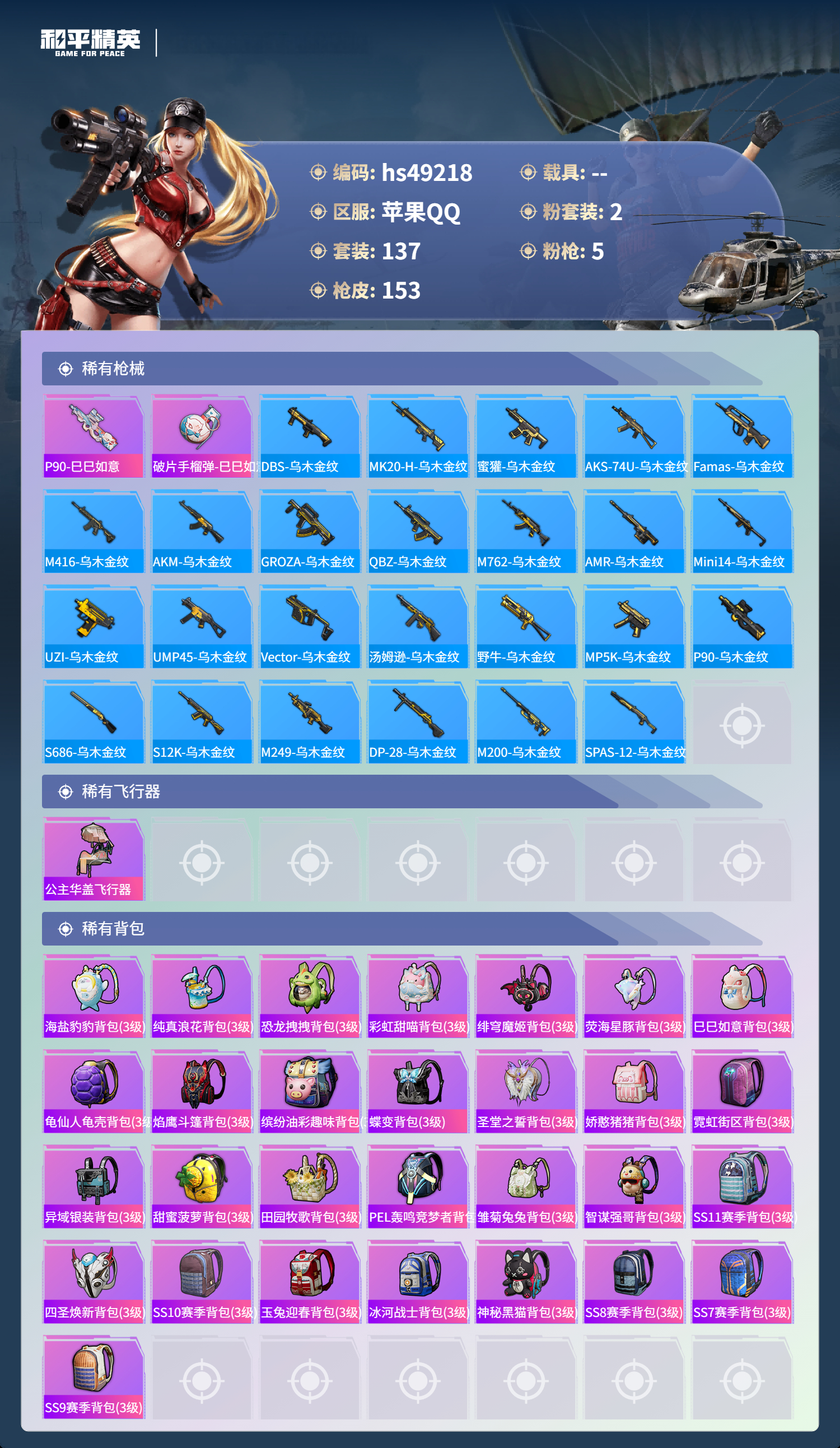 游戏区服:和平精英 / 苹果系统 / QQ帐号