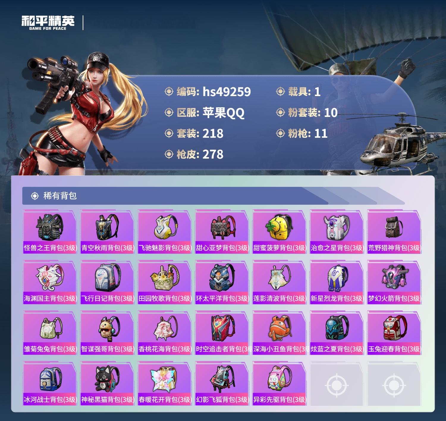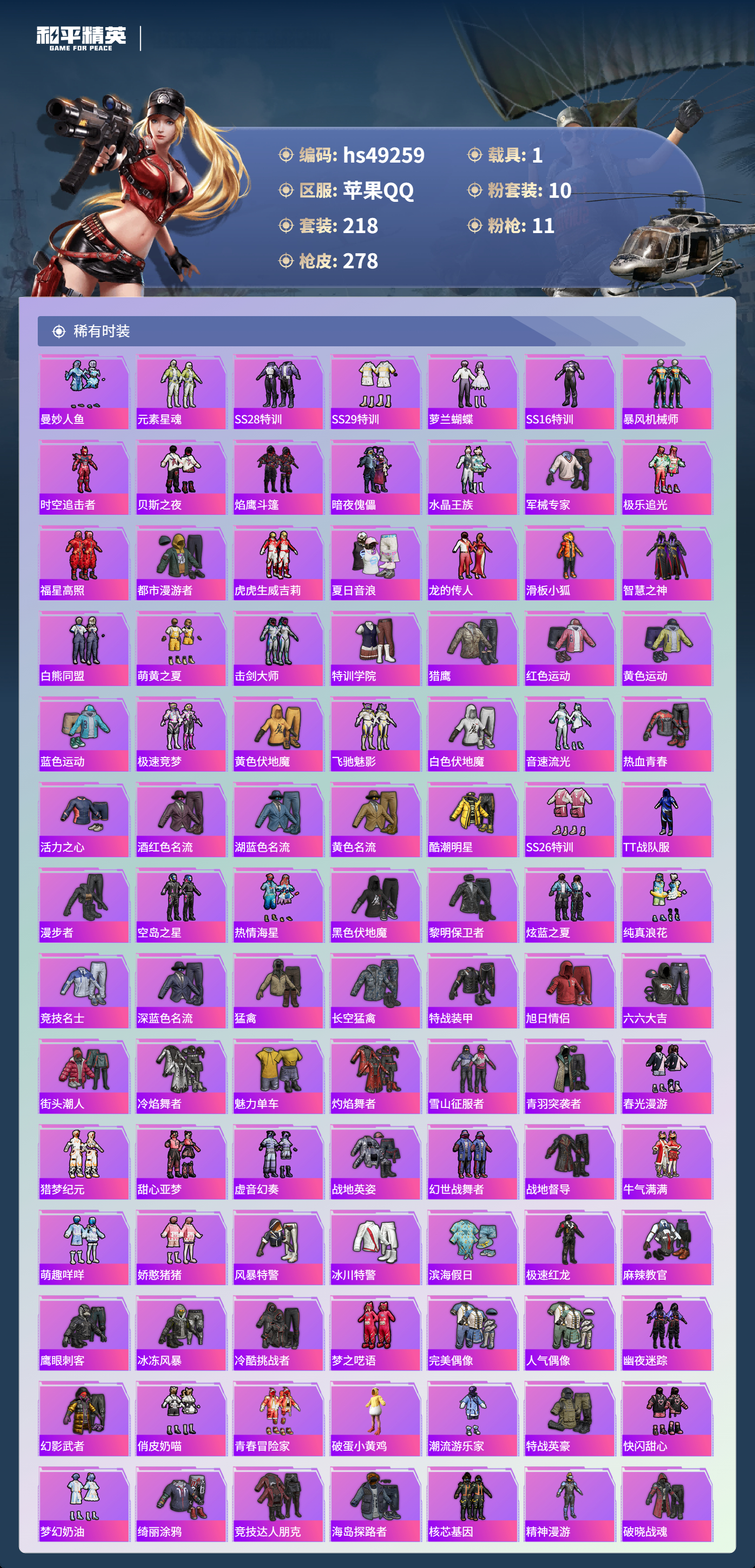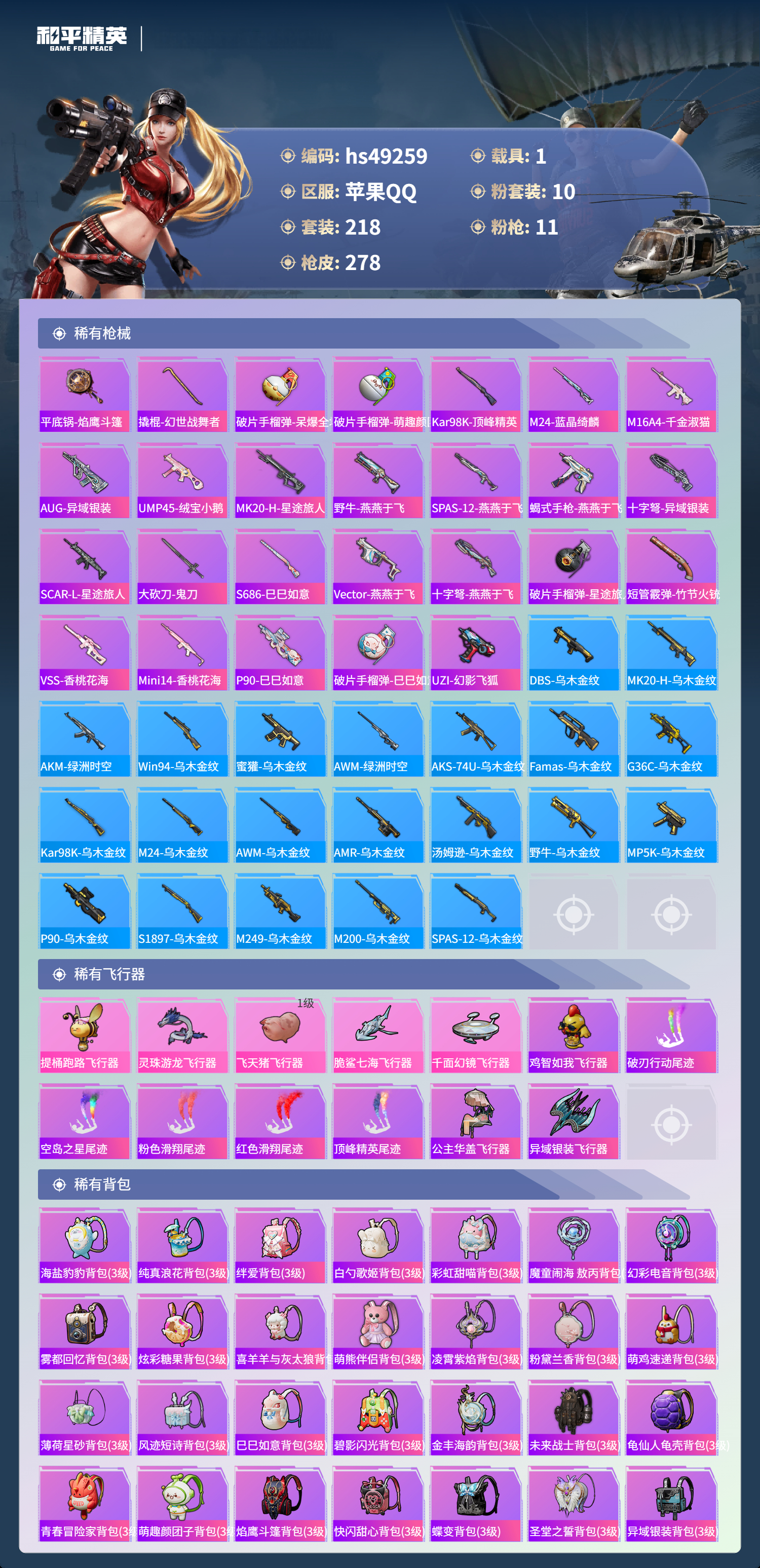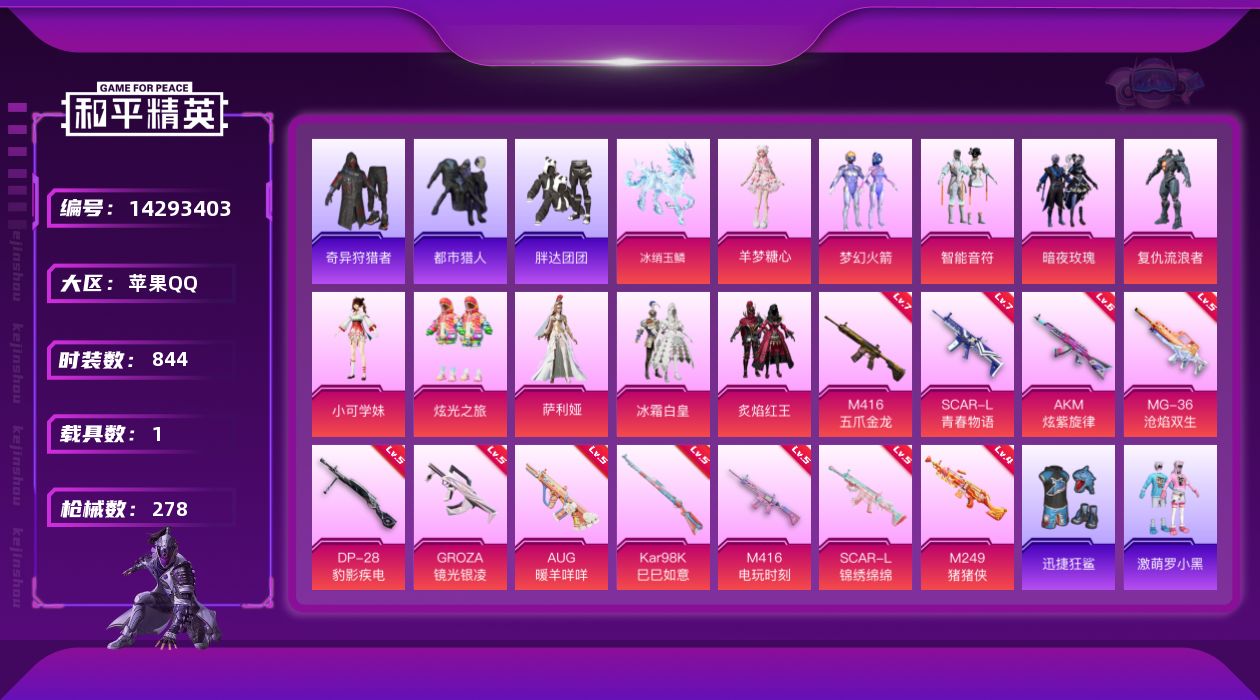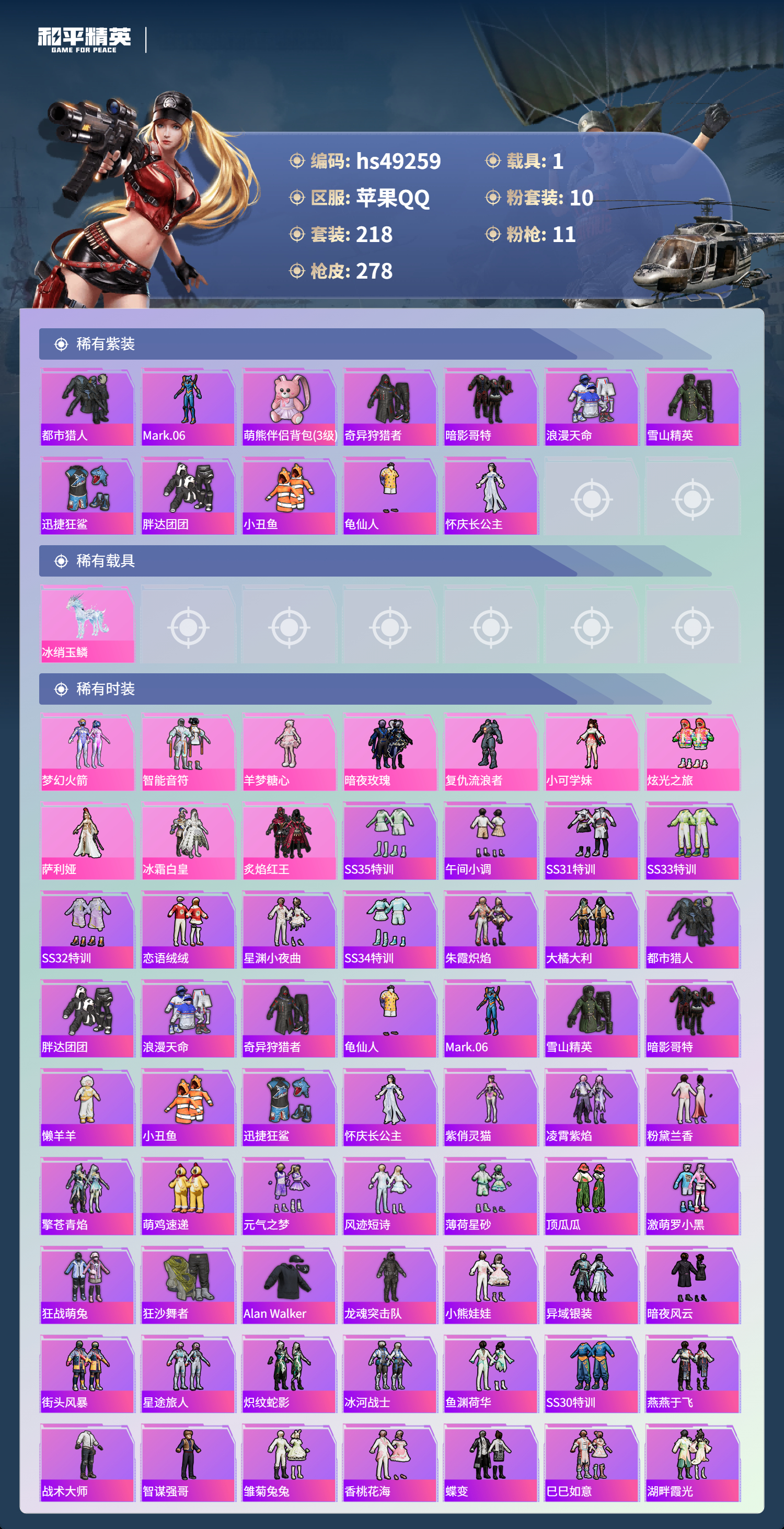 【101075】【不可二次】【苹果QQ】滑板小狐 龟仙人 S686-奇异狩猎者 M416-五爪金龙 漫步者 都市猎人 炙焰红王 极速红龙 M762-奇异狩猎者 M416-电玩时刻 M24-香水柠檬 瑞龙福将 智能音符 浪漫天命 梦之呓语 激萌罗小黑 胖达团团 团圆交子 迅捷狂鲨 奇异狩猎者 M762-瑞龙福将 千面幻镜飞行器 狂沙舞者 SCAR-L-锦绣绵绵 AKM-炫紫旋律 梦幻火箭 暗夜玫瑰