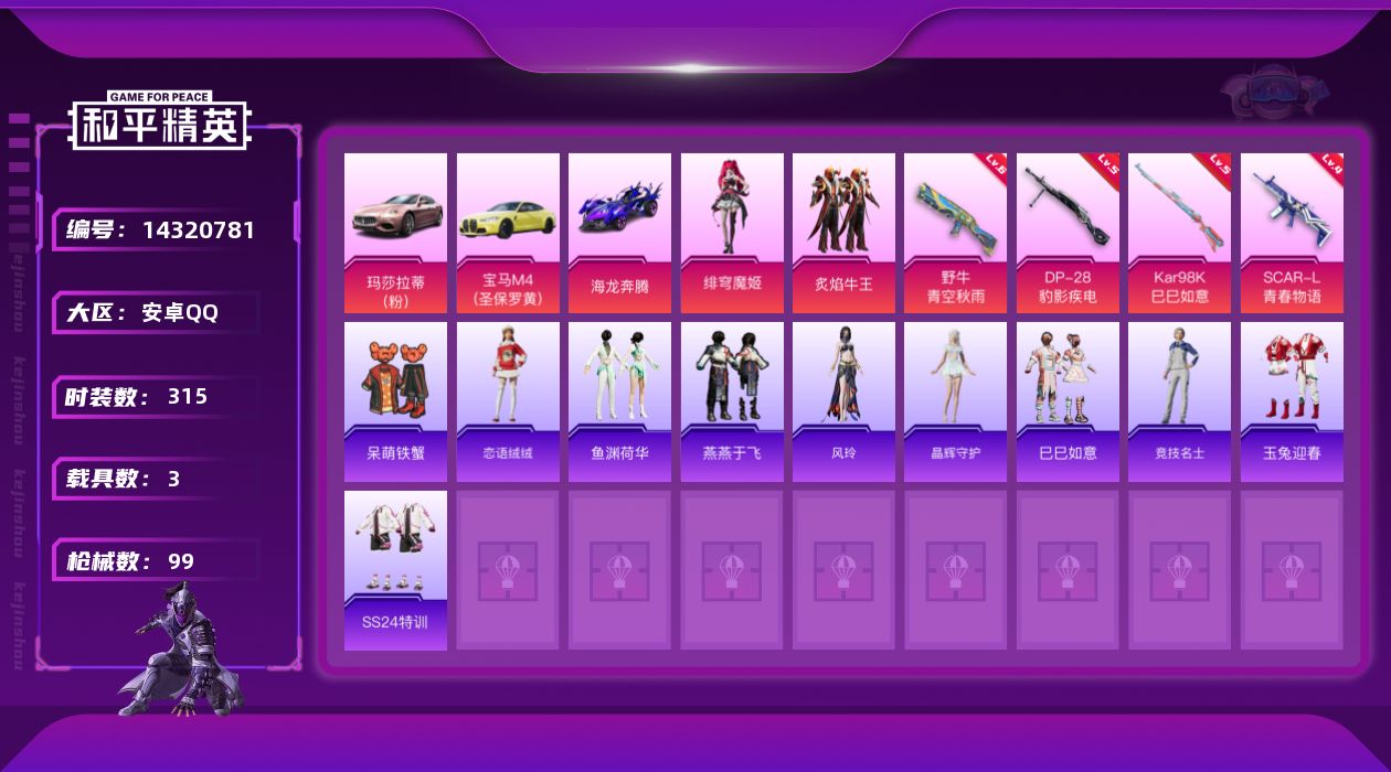 游戏区服:和平精英 / 安卓系统 / QQ账号