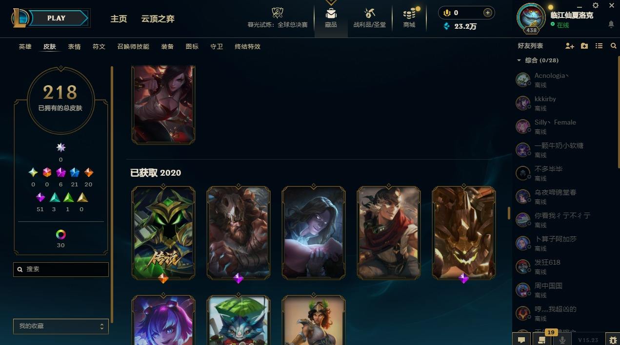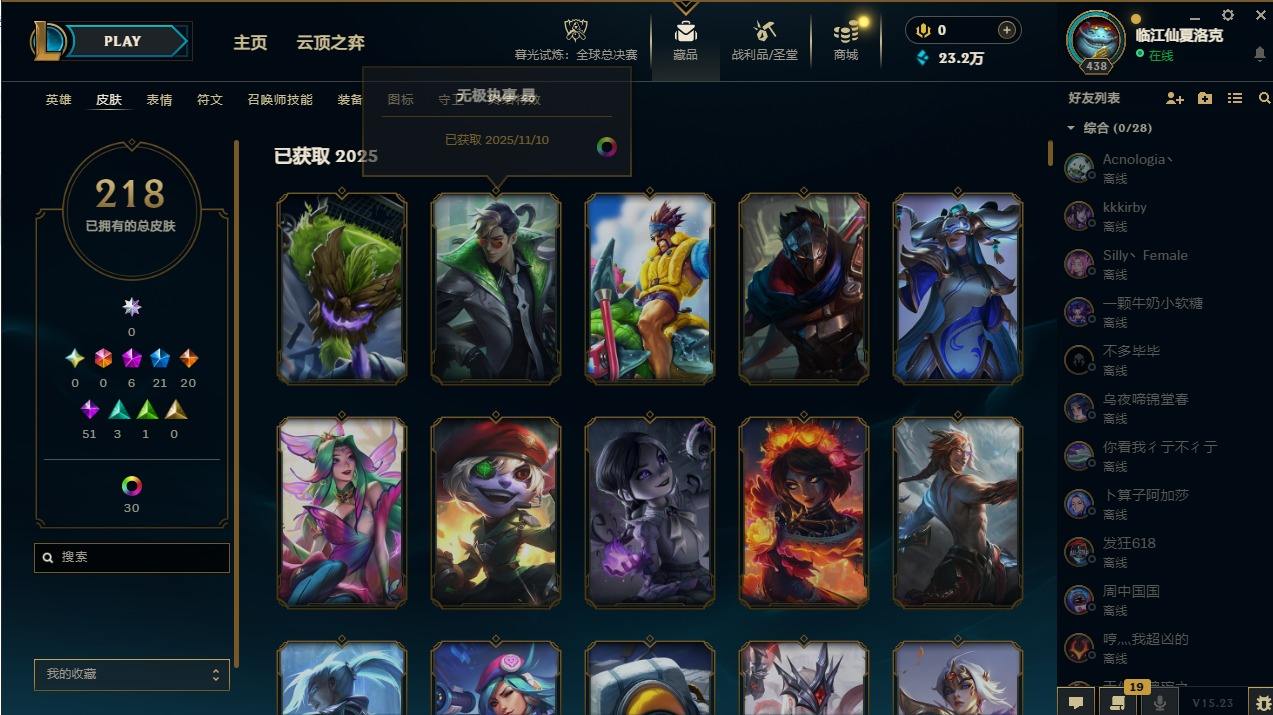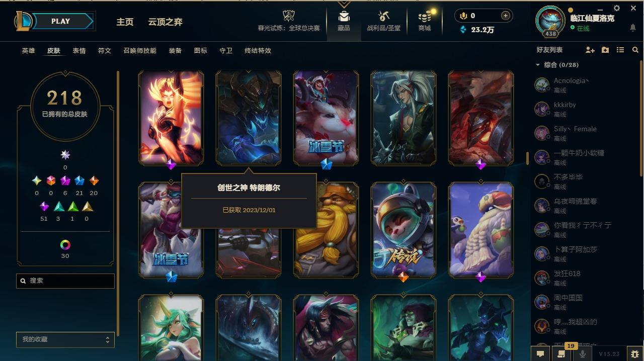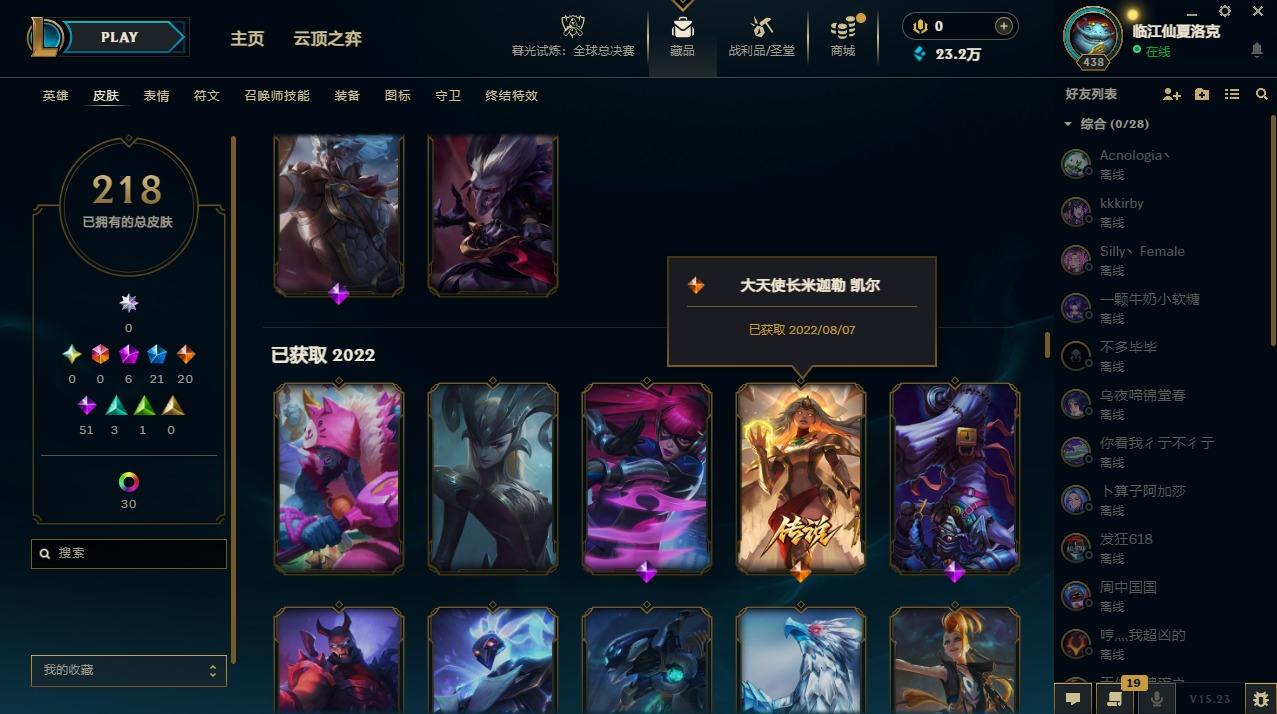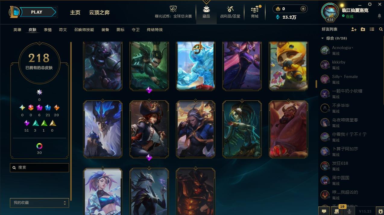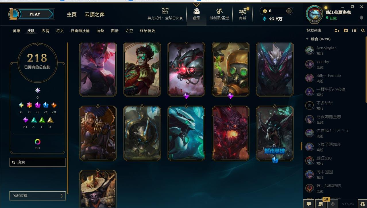 【107345】[14336786]6神话 21限定 20传说 51史诗 218皮肤 47炫彩 172英雄 可二次 可修改实名 【至臻】:至臻 墨之影武者 亚索【海克斯】:海克斯 嘉文四世【限定】:银白审判 凯尔【赛季限定皮】:胜利女神-菲奥娜,胜利剑圣 易,胜利女神 娑娜【冠军限定系列】:S14 T1 永恩,S4 SSW 炼金,S12 DRX 千珏【冰雪节限定】:魄罗骑士 瑟庄妮,圣诞精灵 崔