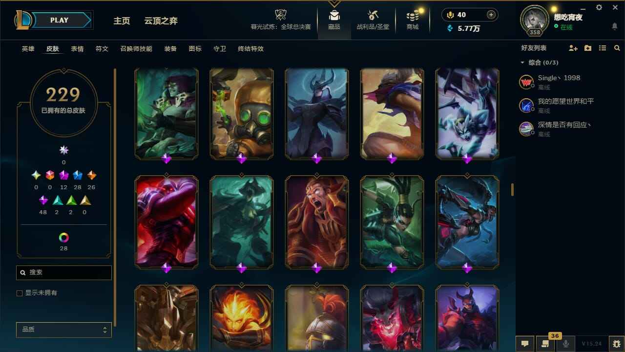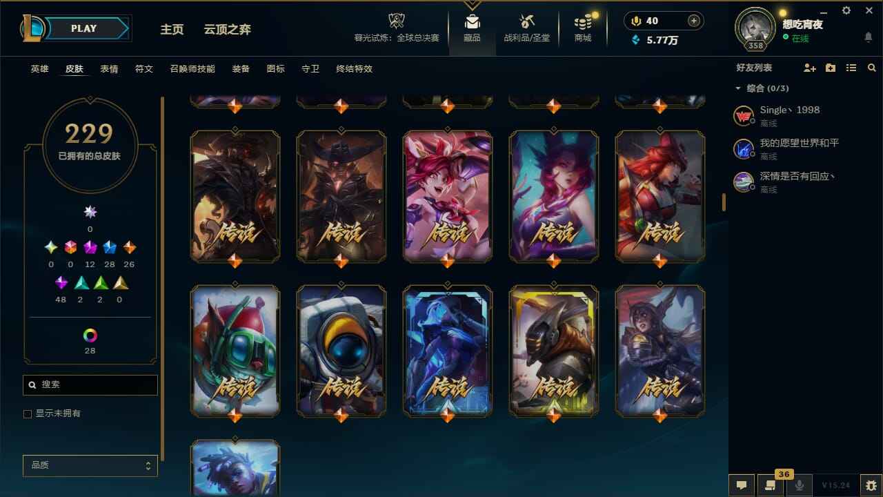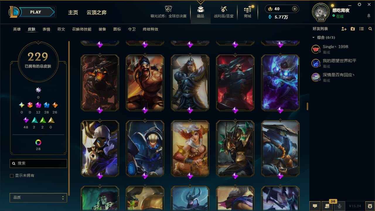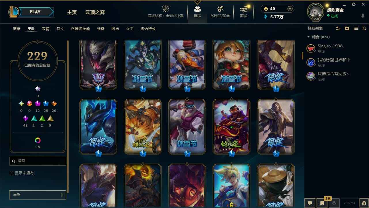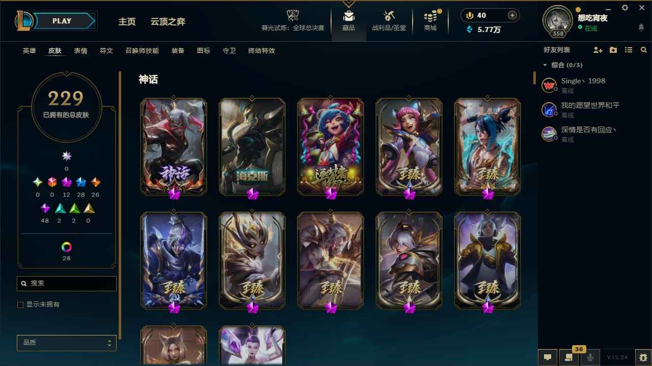 【107724】[14338580]LM414/裁决之地 单双排段位:荣耀黄金 英雄数量:172 皮肤数量:229 炫彩数量:43 臻彩数量:8 神话数量:12 云顶神话数量:0 游戏点卷:40 神话精粹:19 蓝色精萃:57747 橙色精粹:777 钥匙:0 宝箱:1 【重要头像】魔女卡蜜尔炫彩 KDA卡莎BADDEST 不错哦 至臻幻灵战斗猫金克丝 至臻魔女婕拉 【重要皮肤】莲华温泉厄斐琉斯