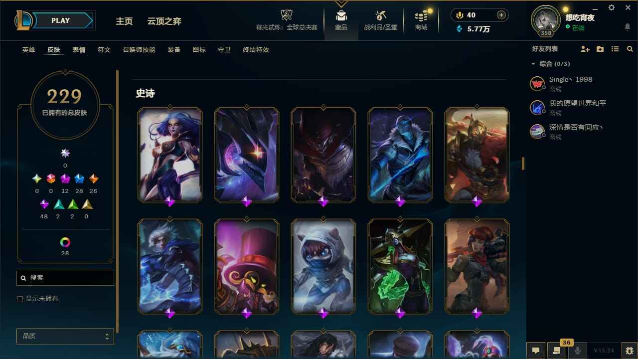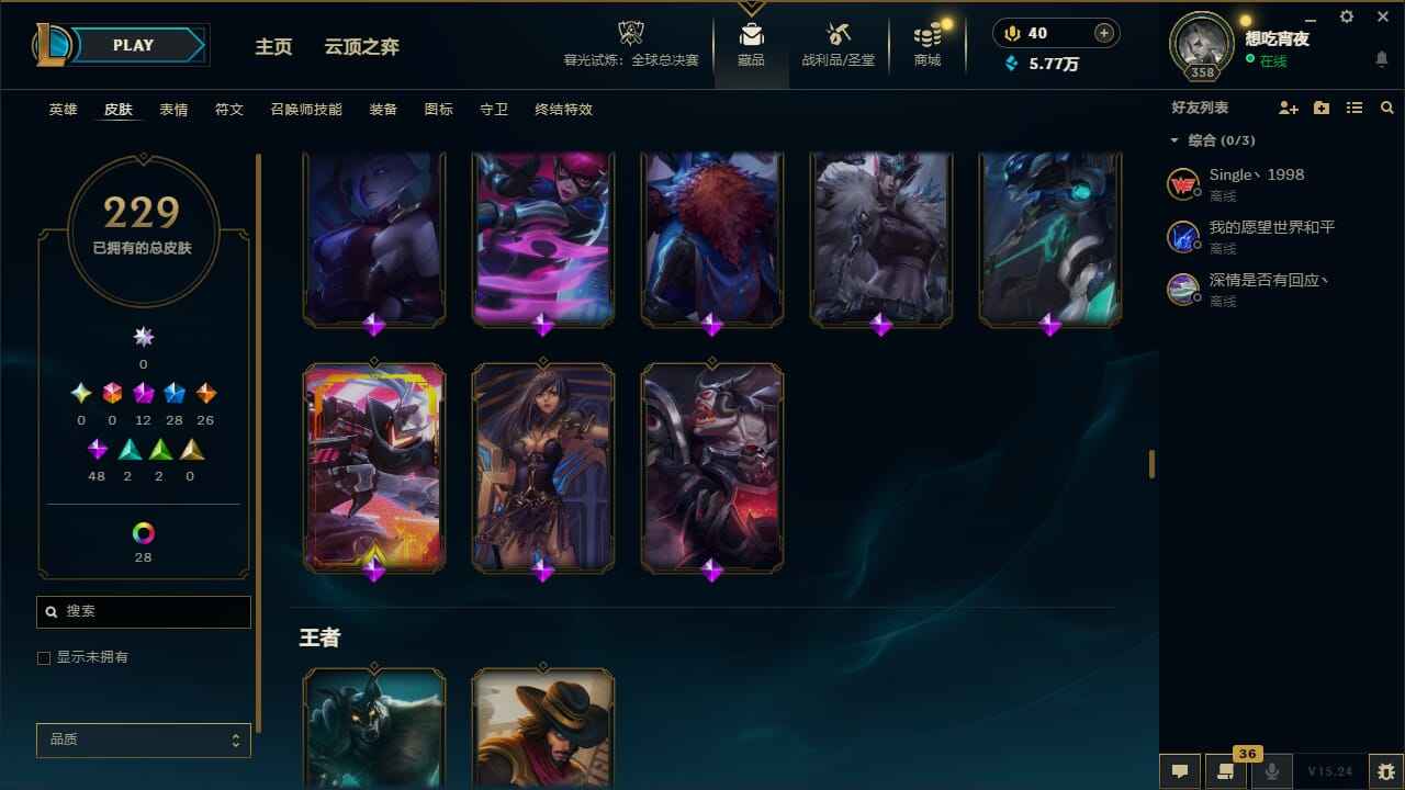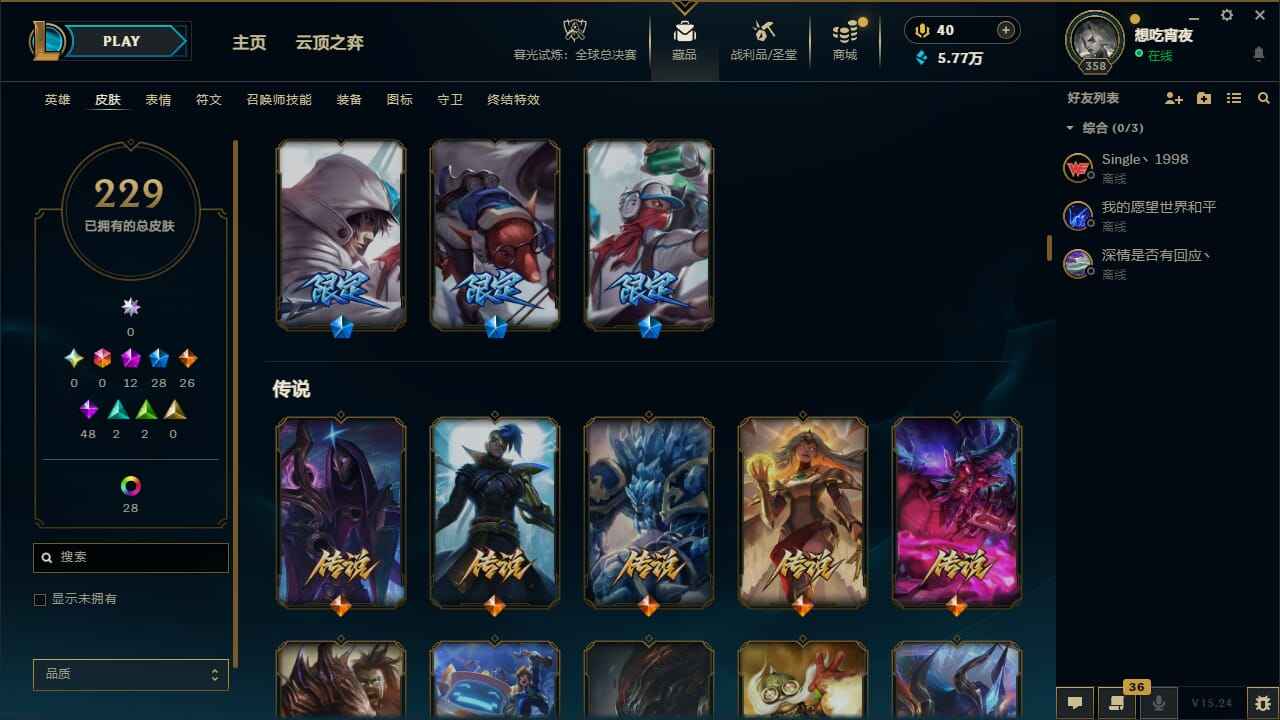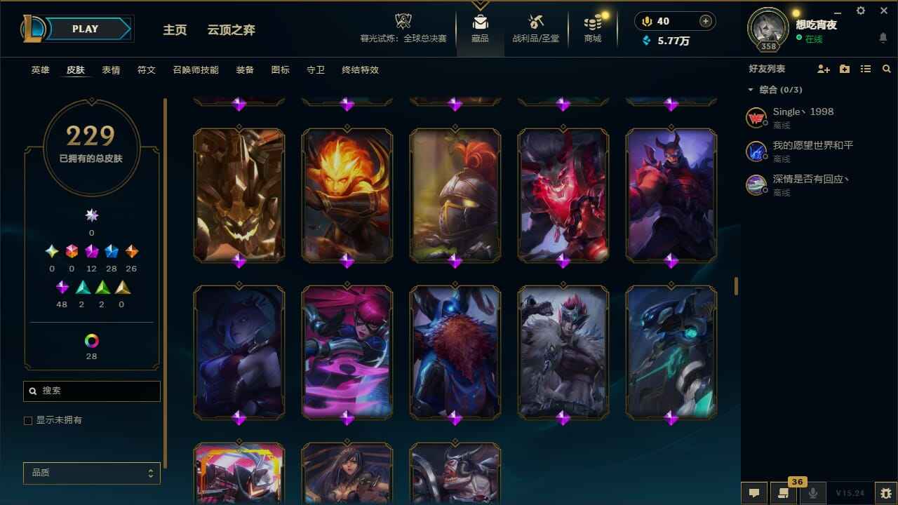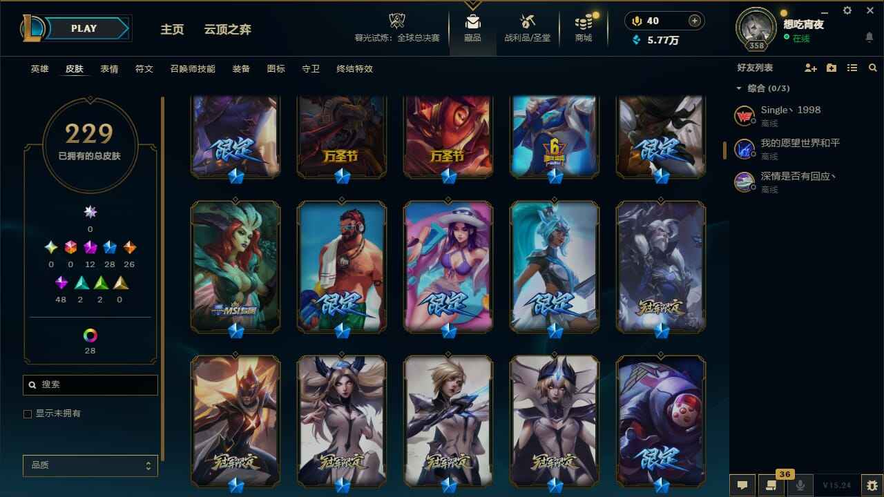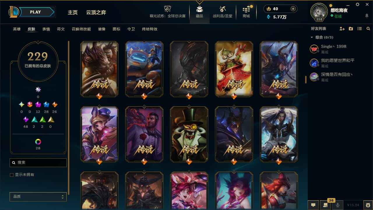 【107724】[14338580]LM414/裁决之地 单双排段位:荣耀黄金 英雄数量:172 皮肤数量:229 炫彩数量:43 臻彩数量:8 神话数量:12 云顶神话数量:0 游戏点卷:40 神话精粹:19 蓝色精萃:57747 橙色精粹:777 钥匙:0 宝箱:1 【重要头像】魔女卡蜜尔炫彩 KDA卡莎BADDEST 不错哦 至臻幻灵战斗猫金克丝 至臻魔女婕拉 【重要皮肤】莲华温泉厄斐琉斯