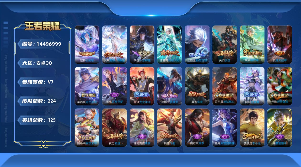 游戏区服:王者荣耀 / 安卓系统 / QQ账号