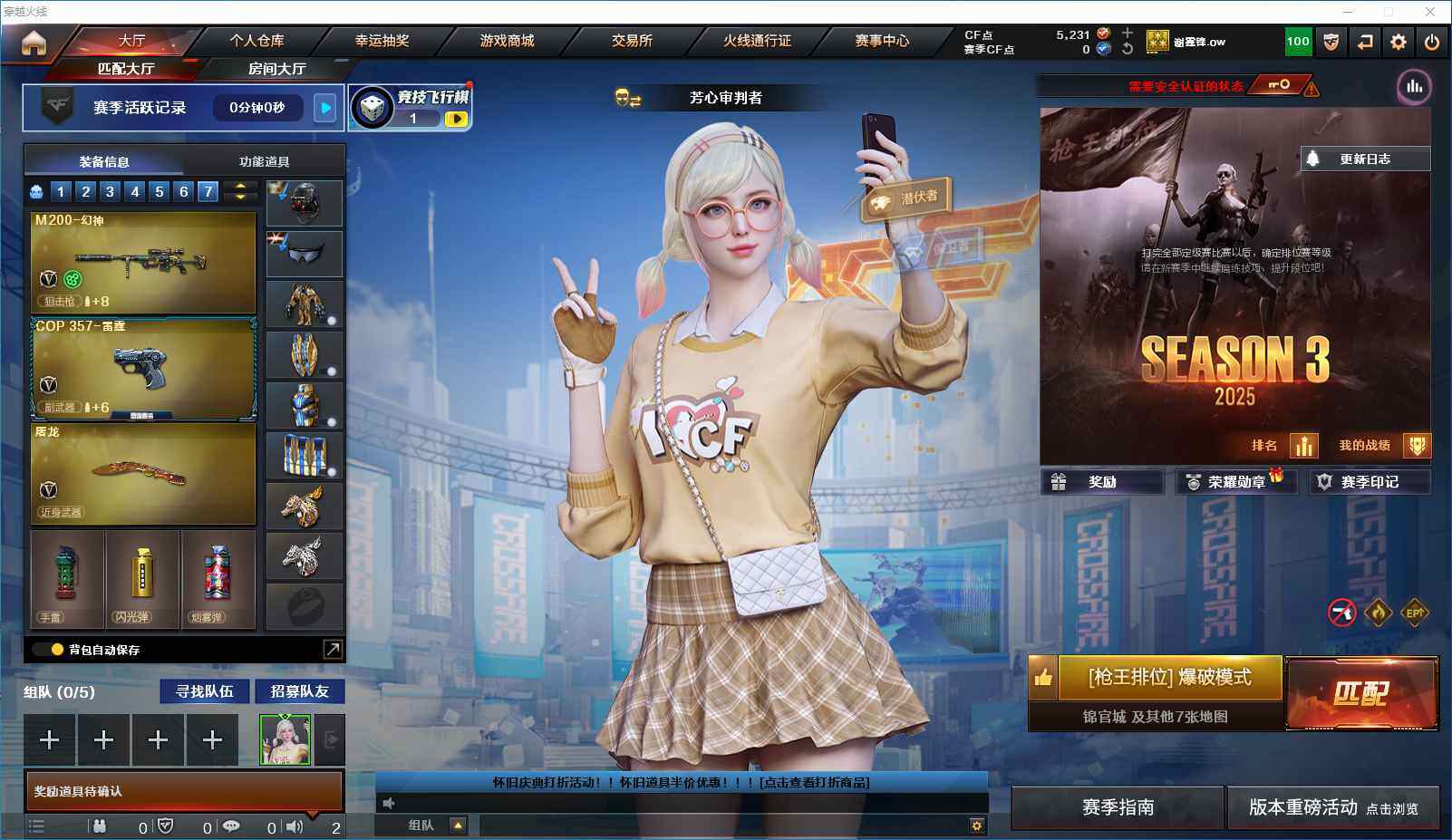 游戏区服:穿越火线 / 北部战区 / 吉林一区互 通