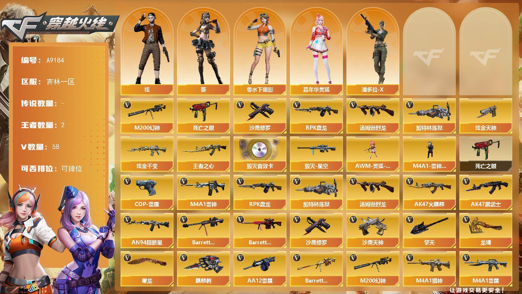 【132663】【132663】[14504003]A9184/可二次/QQ区/59V/【0封】【M200幻神】【雷霆套】王者之心/M4A1-猎神/AN94-
