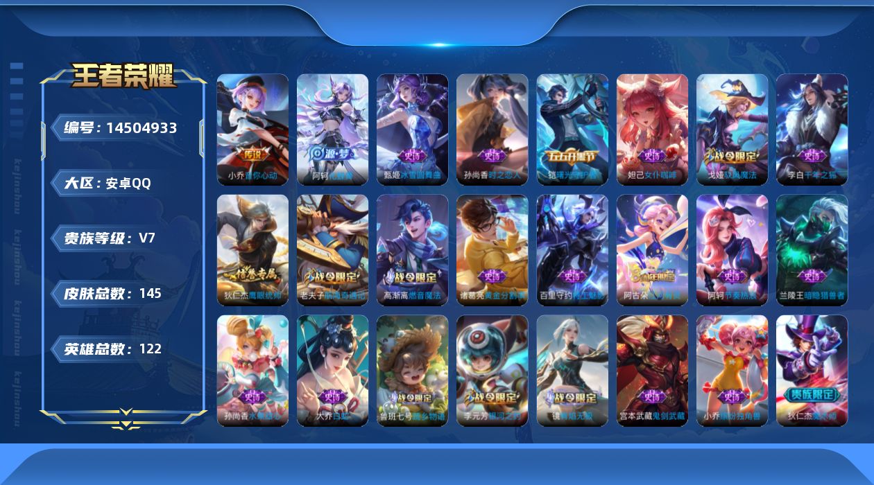 游戏区服:王者荣耀 / 安卓系统 / QQ账号