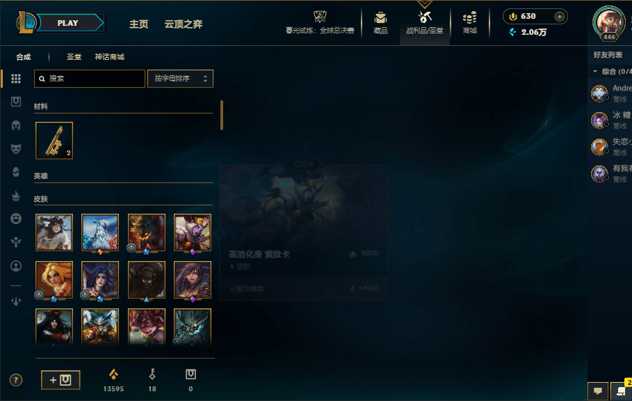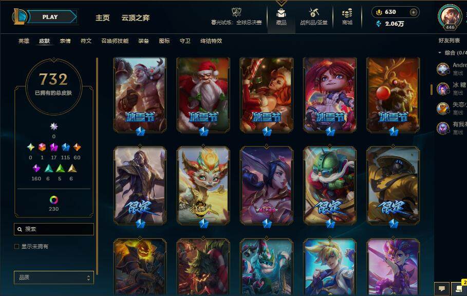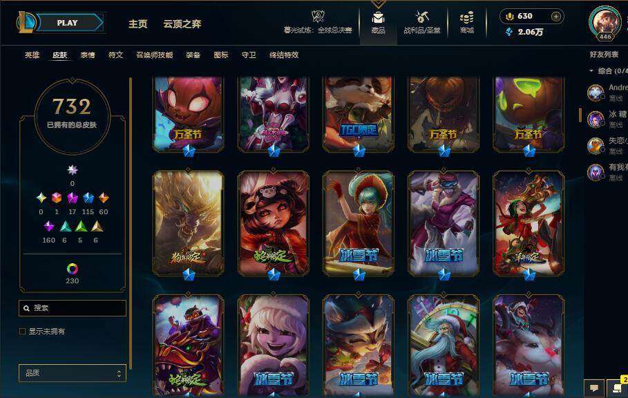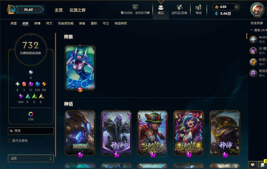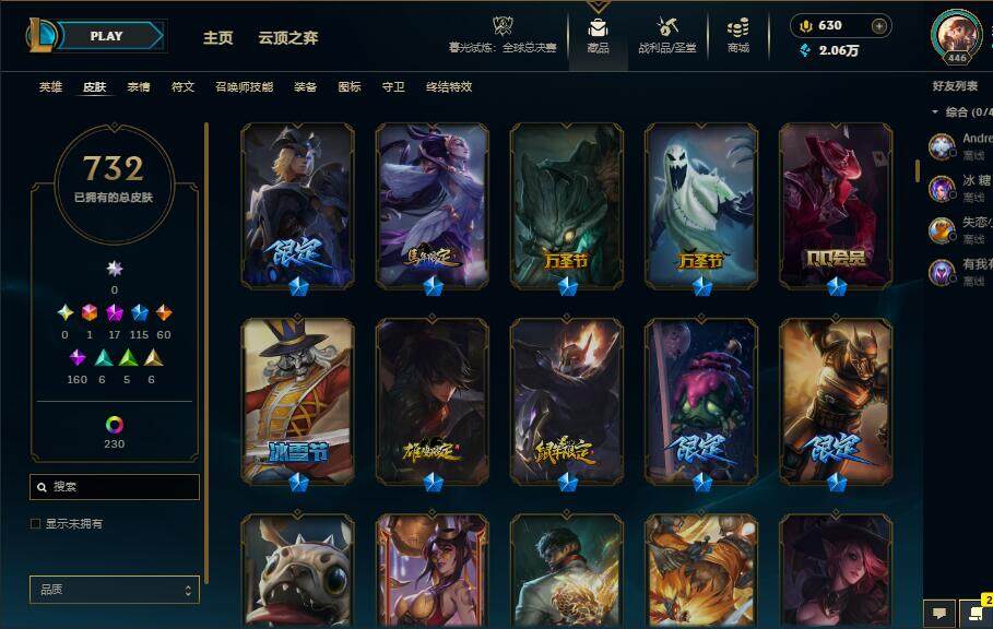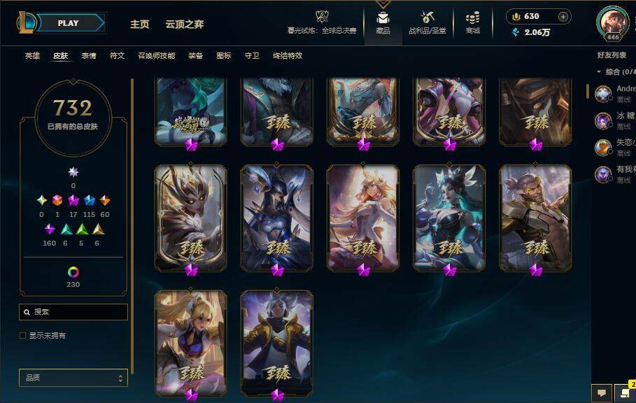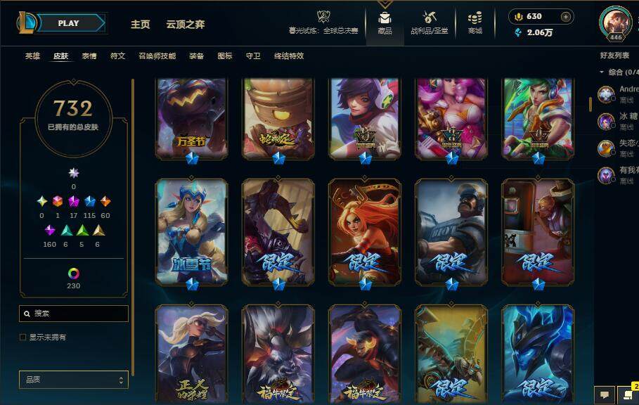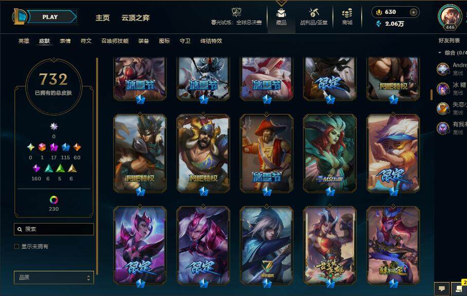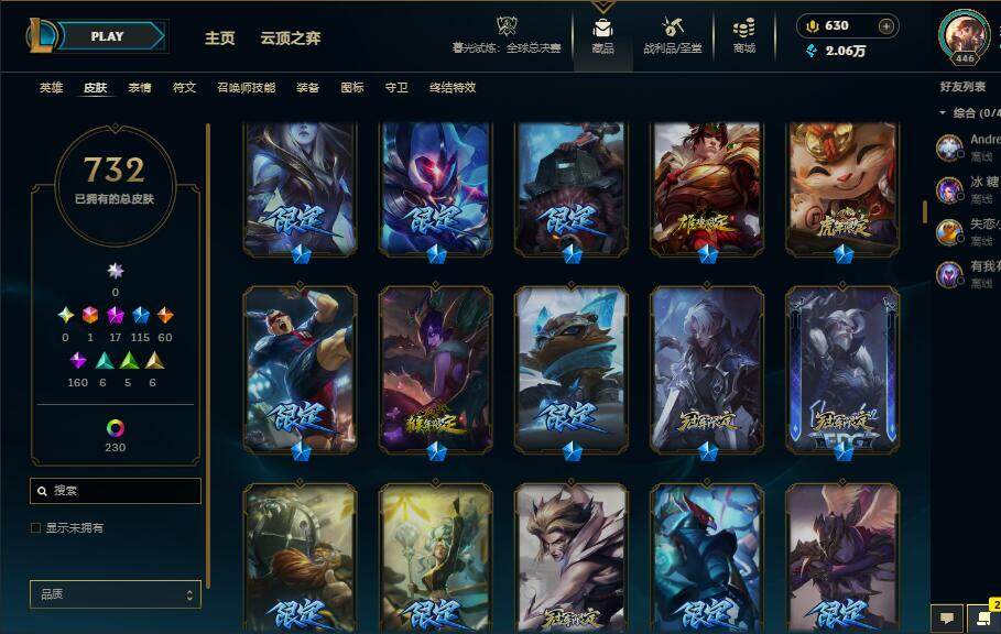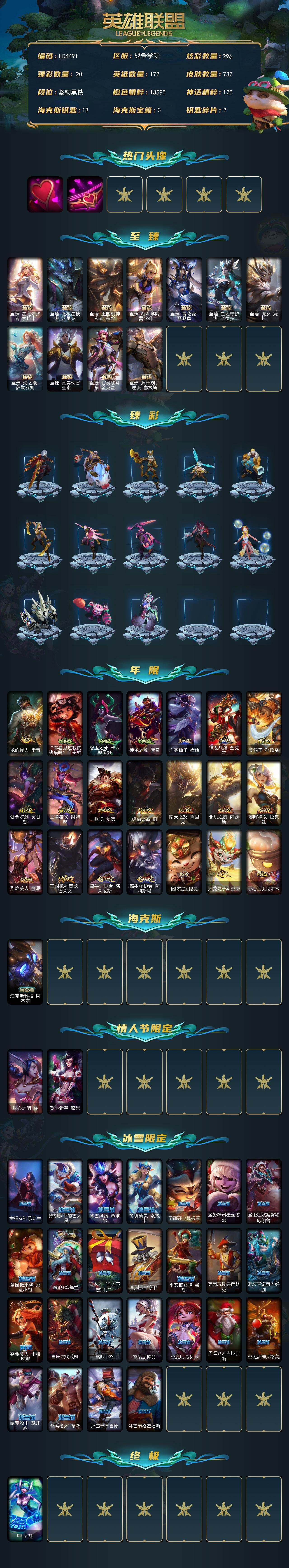 【136811】【LD4491】172英雄/732皮肤/1终极/17神话/115限定/20臻彩/296炫彩/60传说/160史诗/未定级账号等级:446/爱意绵绵/爱情之歌/至臻星之守护者索拉卡/至臻北极星使者沃里克/至臻王者机甲玄武盖伦/至臻战斗学院蕾欧娜/至臻青花瓷丽桑卓/至臻星之守护者辛德拉/至臻魔女婕拉/至臻海之歌萨勒芬妮/至臻真实伤害亚索/至臻幻灵战斗猫金克丝/至臻源计划:逆流塞拉斯/