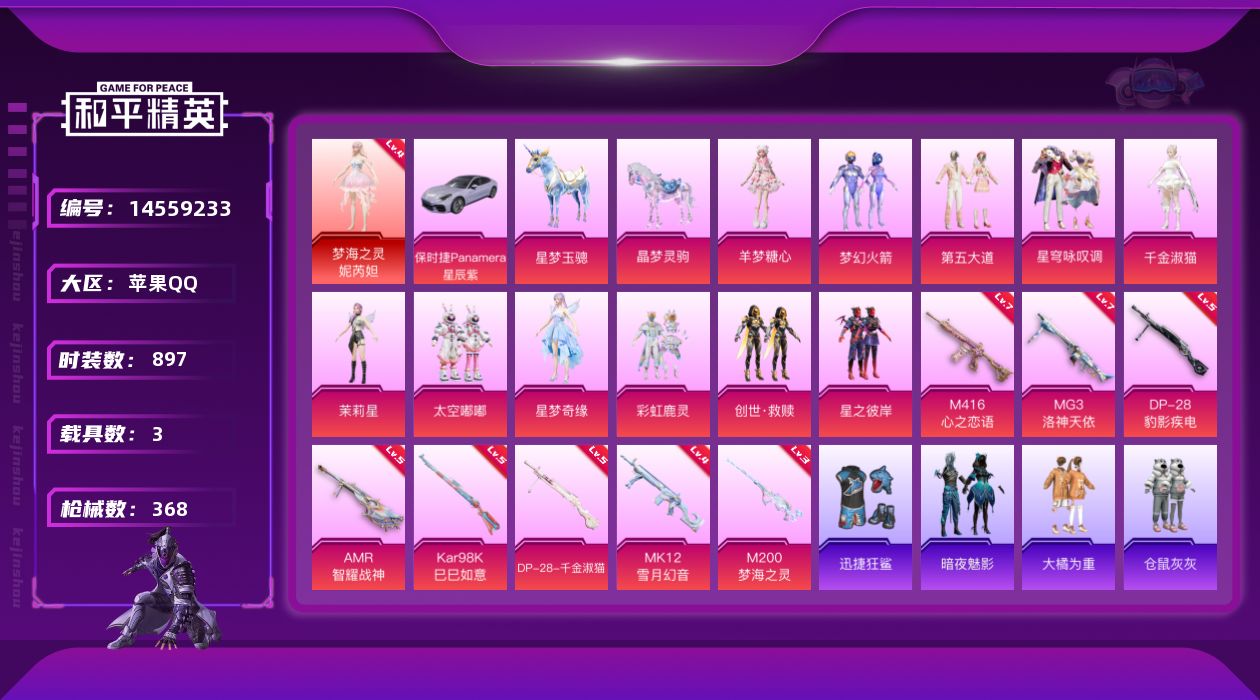 【139457】【不可二次】【苹果QQ】龟仙人 大橘为重 极速红龙 豚鼠丹丹 忍者信条 汤姆逊-林间仙鹿 星之彼岸 仓鼠灰灰 M416-仓鼠灰灰 MK47-林间仙鹿 M416-心之恋语 瑞龙福将 团圆交子 星梦玉骢 迅捷狂鲨 M762-瑞龙福将 齐天大圣飞行器 梦海之灵-妮芮妲 MG3-洛神天依 彩虹鹿灵 梦幻火箭 幻海精灵飞行器 粉红小猪 M200-梦海之灵 天之羽翼飞行器 风华少年志 雪山精英
