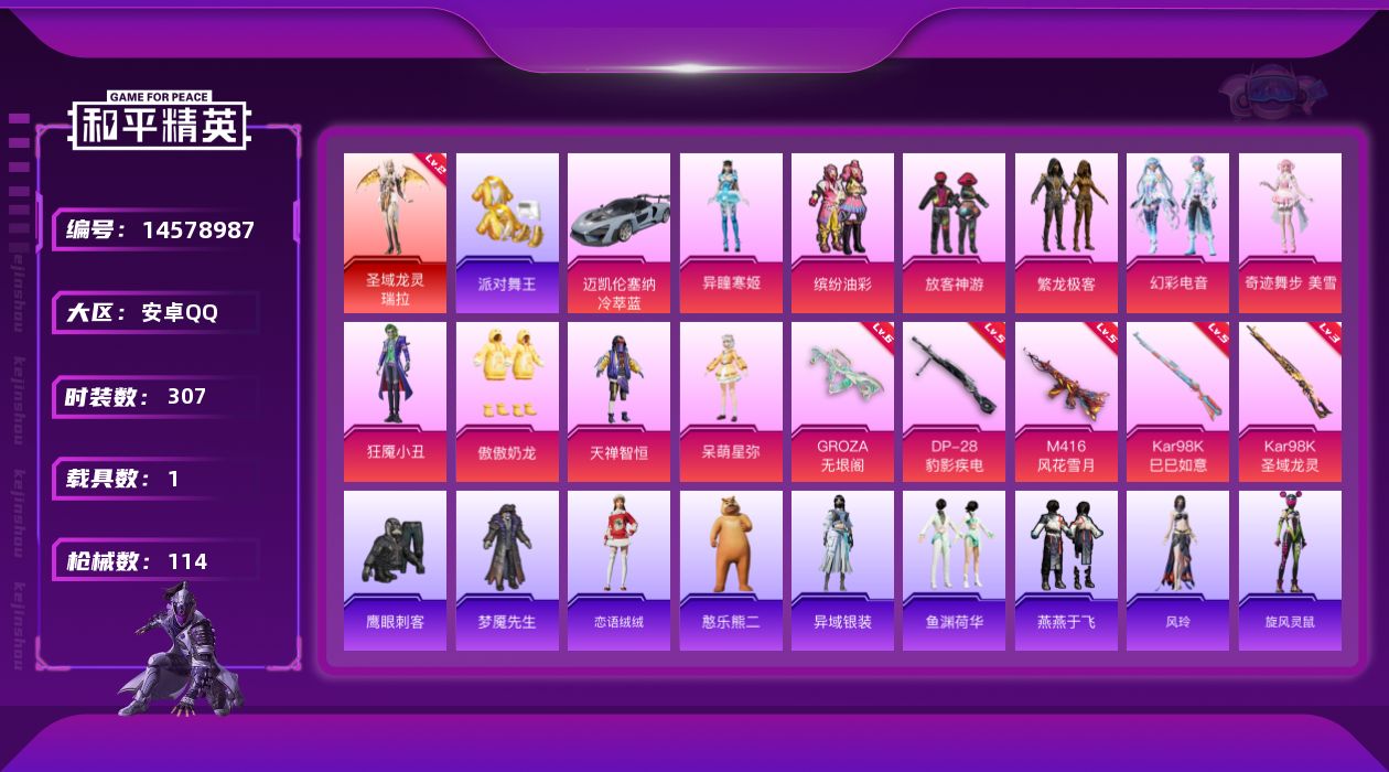 【143222】【可二次】【安卓QQ】繁龙极客 放客神游 M416-风花雪月 AKM-缤纷海域 圣域龙灵-瑞拉 缤纷油彩 天禅智恒 派对舞王