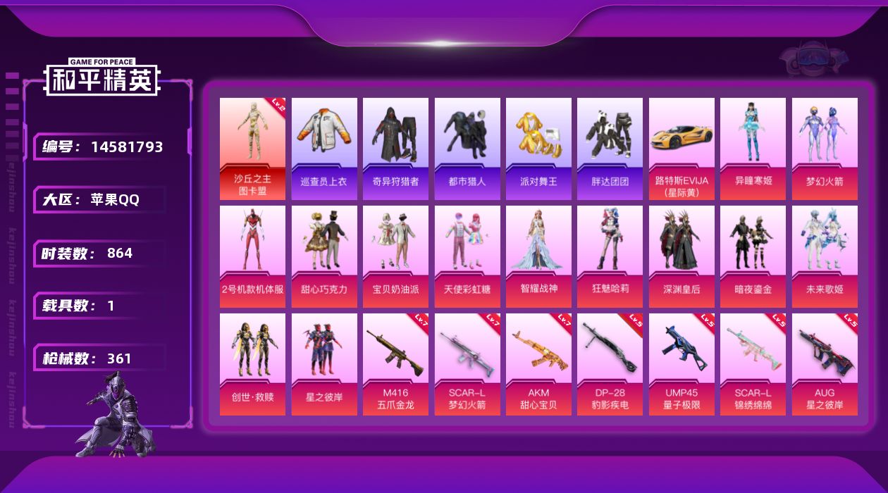 【143800】【不可二次】【苹果QQ】龟仙人 MK14-精灵梦叶罗丽 AKM-星际浪客 路特斯EV黄色 漫步者 M416-星际漫游 都市猎人 M249-古堡领主 豚鼠丹丹 沙丘之主-图卡盟 UMP45-量子极限 M416-仓鼠灰灰 AWM-激战未来 AUG-星之彼岸 狮王雄心 AKM-甜心宝贝 AKM-奇异狩猎者 SCAR-L-梦幻火箭 M24-镜域双华 迅捷狂鲨 M762-瑞龙福将 龙翔九天