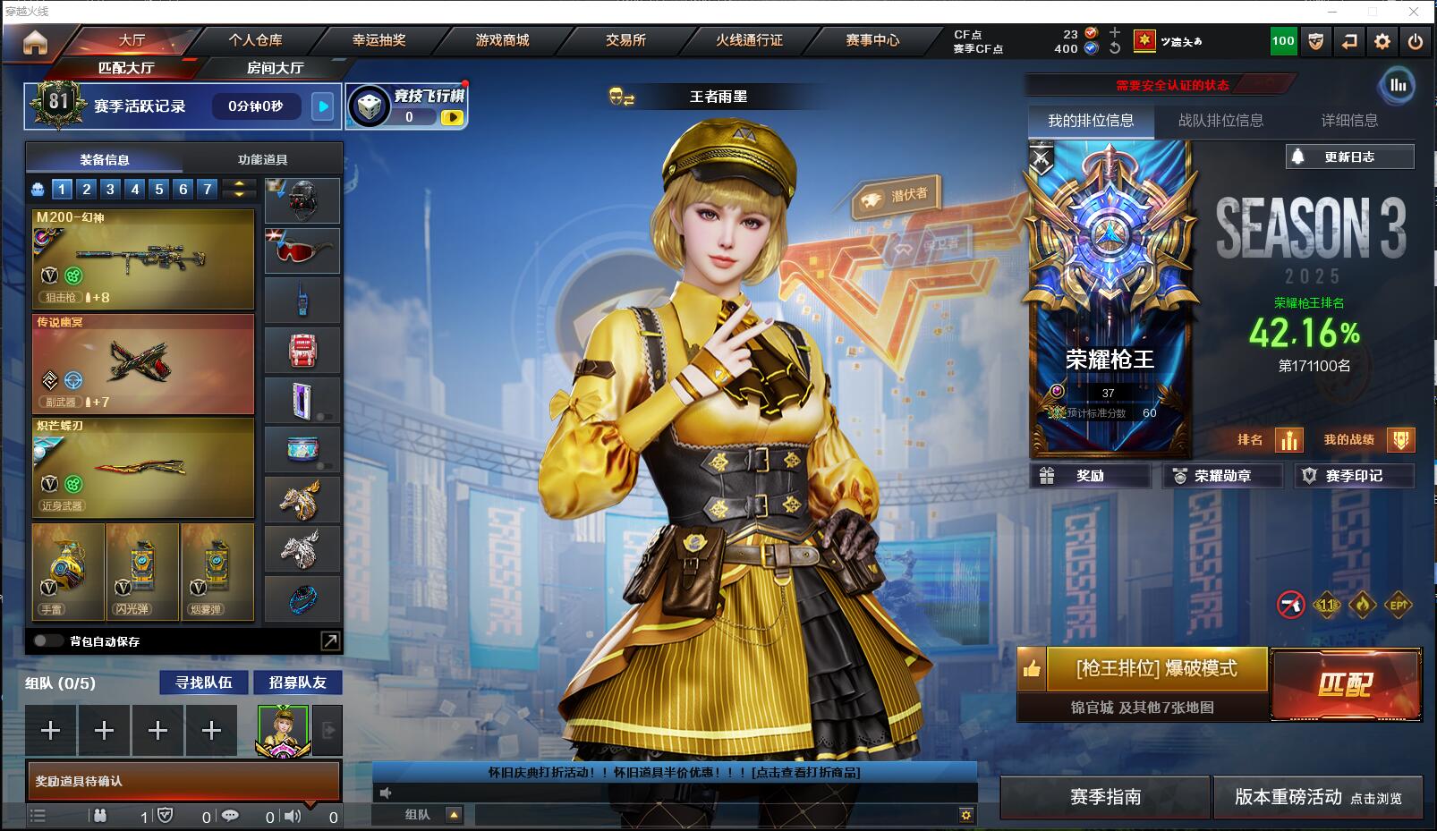 游戏区服:穿越火线 / 北部战区 / 山东一区互 通
