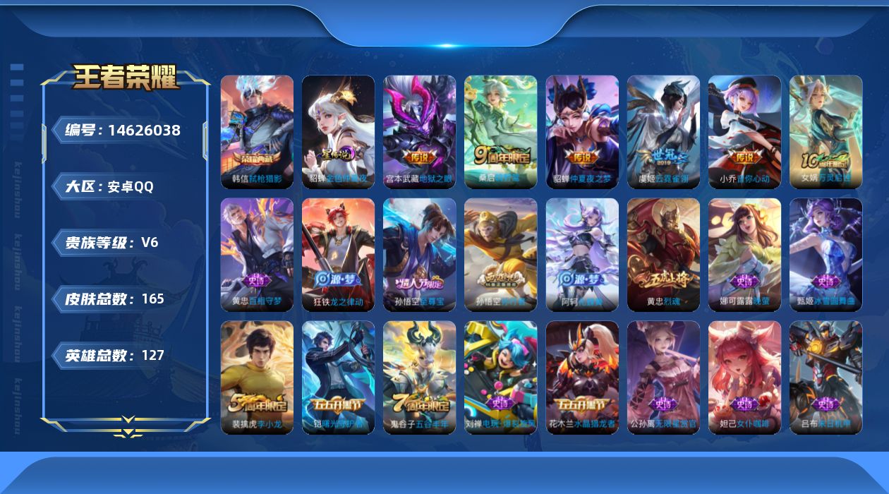 游戏区服:王者荣耀 / 安卓系统 / QQ账号