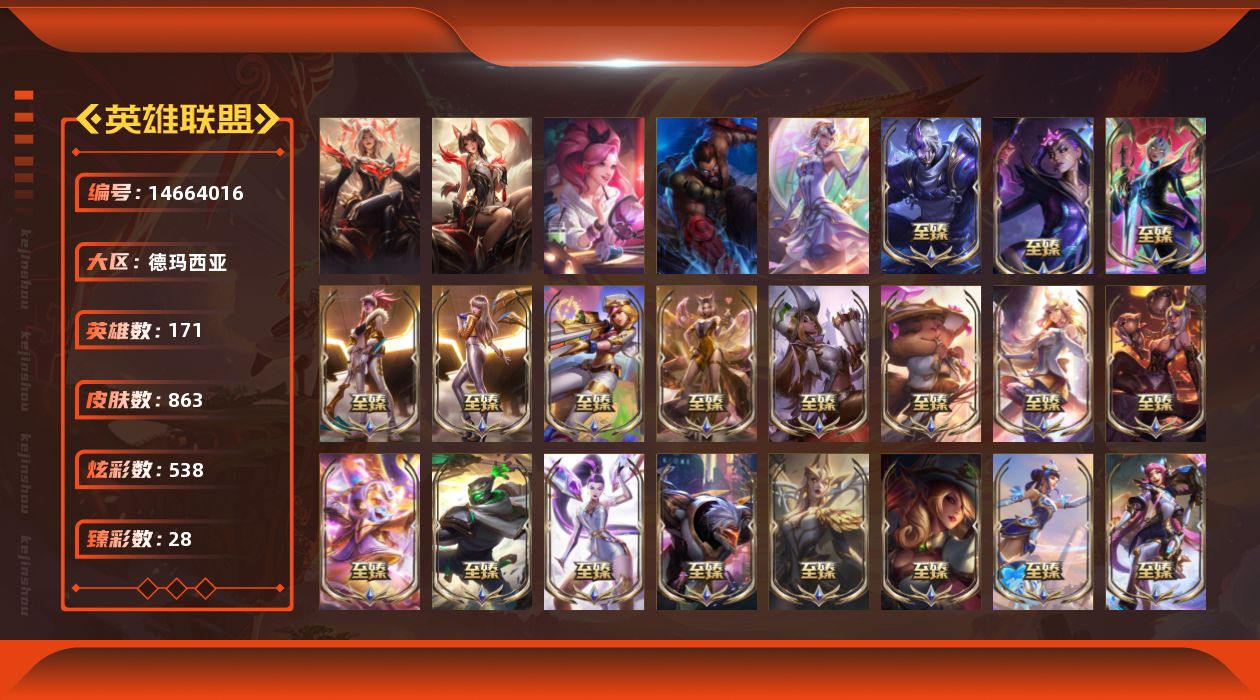 【153651】[14664016]t32451【德玛西亚】联盟不朽阿狸_ 殿堂传奇阿狸 864皮肤 538炫彩 28臻彩 42神话/154限定/89传说/171英雄 账号等级:576【重要头像】觅心悠米手办 爱情鸽 爱情之歌 觅心射手 心型钥匙 觅心游侠卢锡安 萨勒芬妮超级巨星 萨勒芬妮独立音乐人 春晖神女拉克丝 魔女伊芙琳 魔女艾希 魔女阿狸 咖啡甜心喵角包 咖