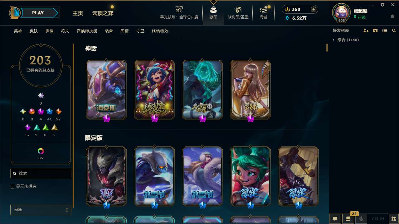 【153655】[14663768]t32449【德玛西亚】 203皮肤 43炫彩 3臻彩 4神话/41限定/27传说/172英雄 账号等级:405 单双排段位:翡翠【重要头像】冬境仙灵索拉卡 冬境仙灵妮蔻 【重要皮肤】KDA一代卡莎至臻 海克斯科技克格莫 胜利剑圣易 胜利女神娑娜 胜利之王泰达米尔 胜利巨口克格莫 胜利机器人布里茨 胜利女神奥莉安娜 胜利枪神卢锡安 胜利之
