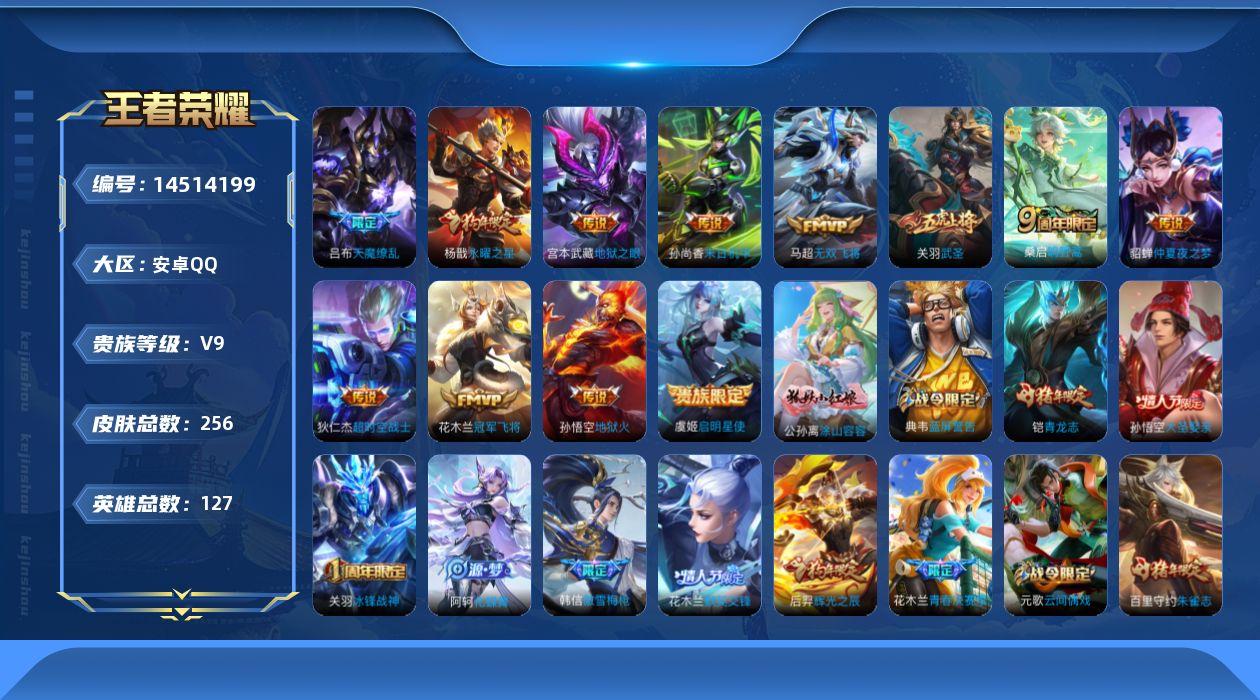 【163739】【可二次】【QQ(安卓)】御旌 弈星混沌棋 大漠名商 冠军飞将 逐梦之星 无双飞将 地狱之眼 原初探秘者 武则天 沙漠行僧 演武夺筹 御霄 傲雪梅枪 驱傩正仪 烛龙 逐梦之音 朔风刀 仲夏夜之梦 海盐诗旅 万华元夜 地狱火 辉光之辰 御狮 御銮 永曜之星 疑决卦 醍醐杖 逐梦之翼 超时空战士 饕餮 狰 武圣 天魔缭乱 李小龙 五谷丰年 云中旅人 青龙志 逐梦之光 冰锋战神 穷奇