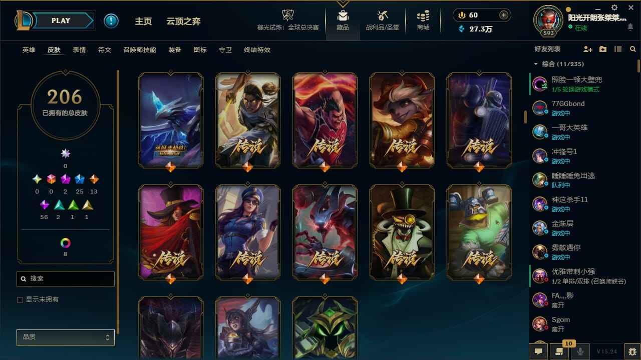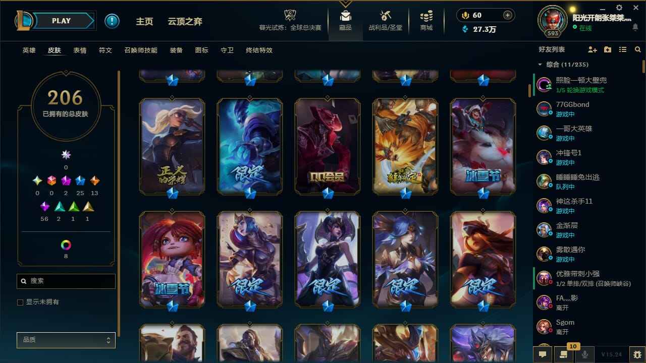【184371】[14896647]LM420/德玛西亚/ 单双排段位:荣耀黄金 英雄数量:172 皮肤数量:206 炫彩数量:8 臻彩数量:0 神话数量:2 云顶神话数量:0 游戏点卷:60 神话精粹:79 蓝色精萃:273161 橙色精粹:1521 钥匙:0 宝箱:163 【重要头像】 【重要皮肤】胜利女神娑娜 胜利女神希维尔 胜利之王泰达米尔 美猴王孙悟空 胜利之树茂凯 胜利女神奥莉安娜