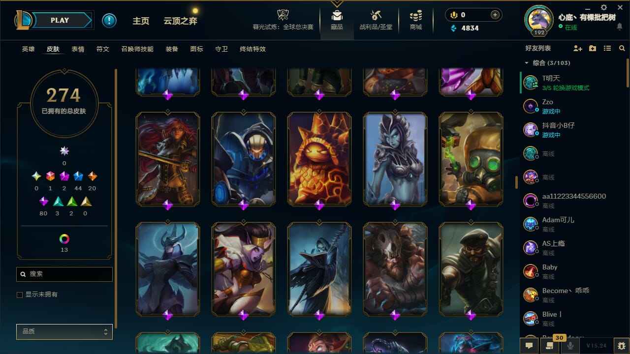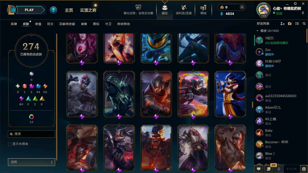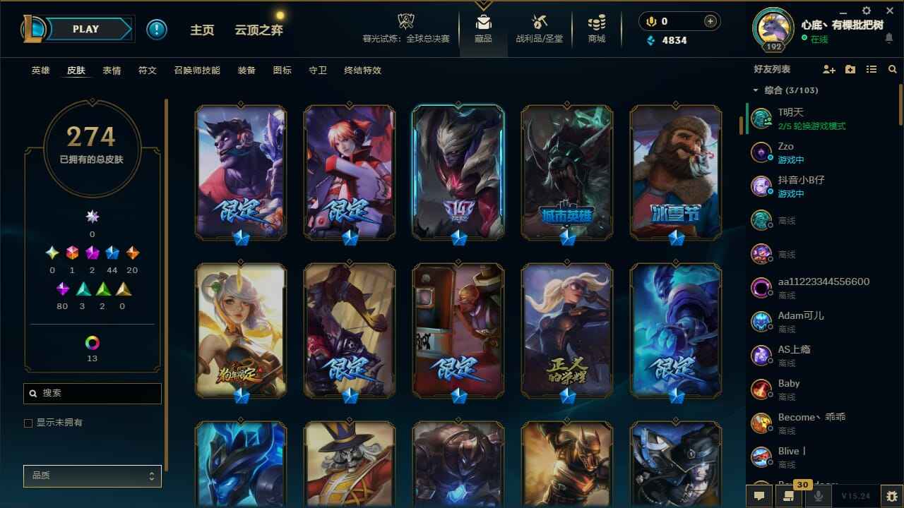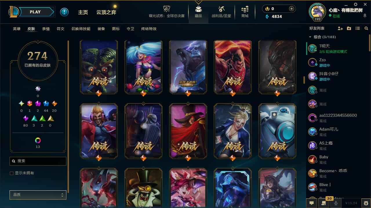 【184378】[14896683]LM421/黑色玫瑰/单双排段位:荣耀黄金 英雄数量:139 皮肤数量:274 炫彩数量:18 臻彩数量:1 神话数量:2 云顶神话数量:0 游戏点卷:0 神话精粹:70 蓝色精萃:4834 橙色精粹:22123 钥匙:0 宝箱:62 【重要头像】爱意绵绵 幼犬沃里克 【重要皮肤】庆典女皇艾尼维亚 玉剑传说舞剑仙 春晖神女拉克丝 胜利之树茂凯 胜利女神奥莉安娜