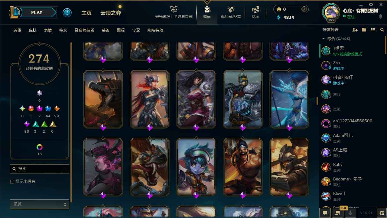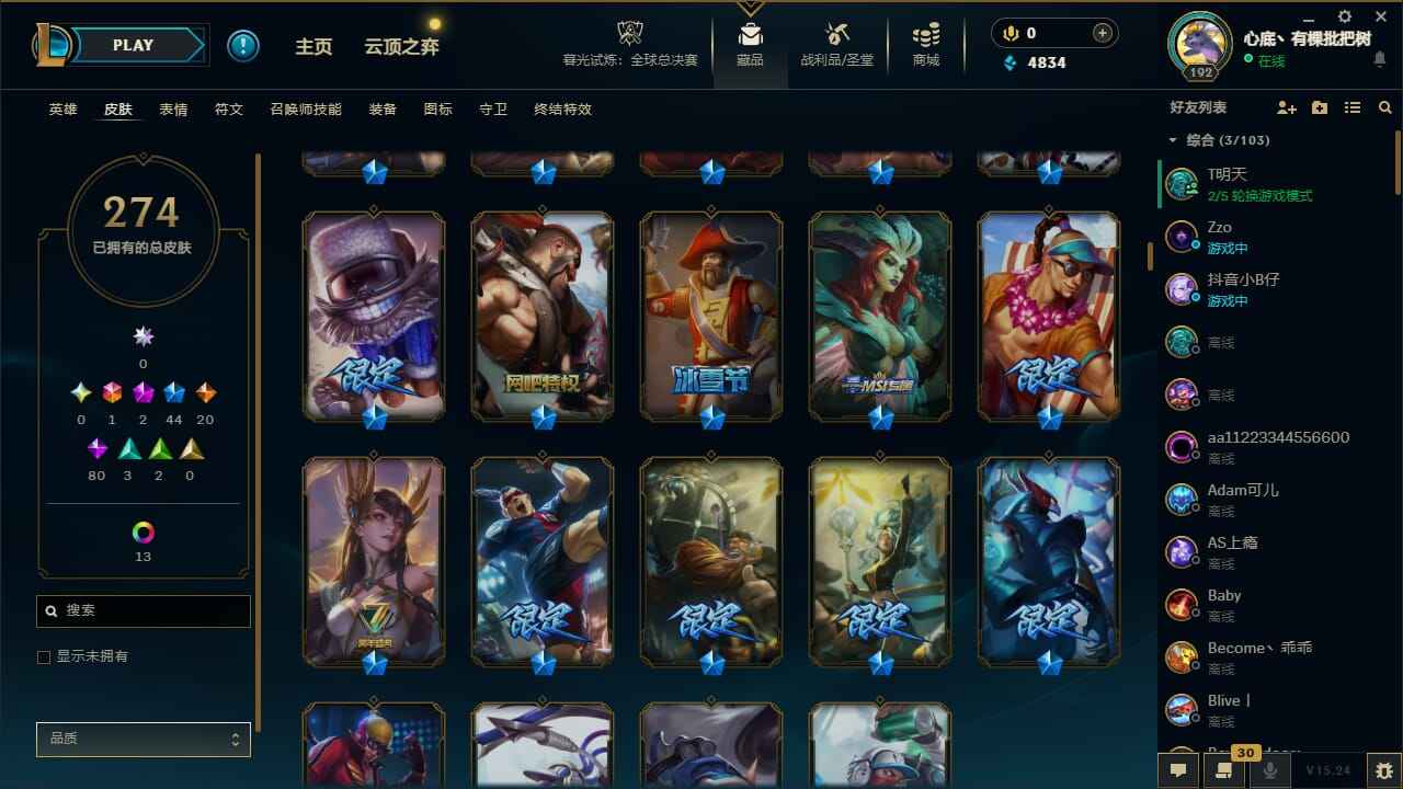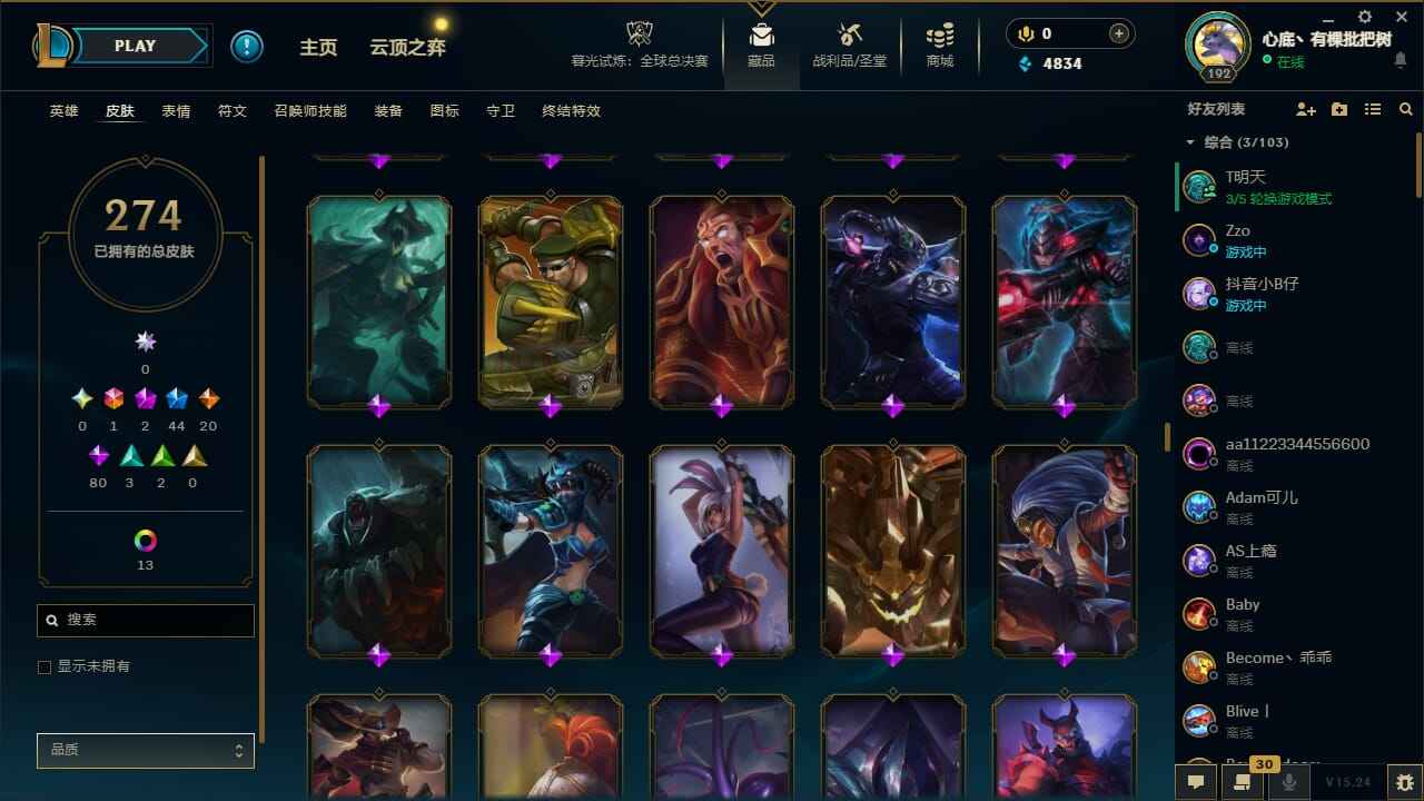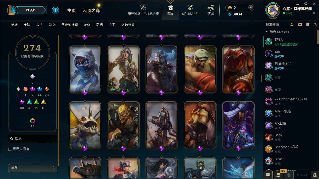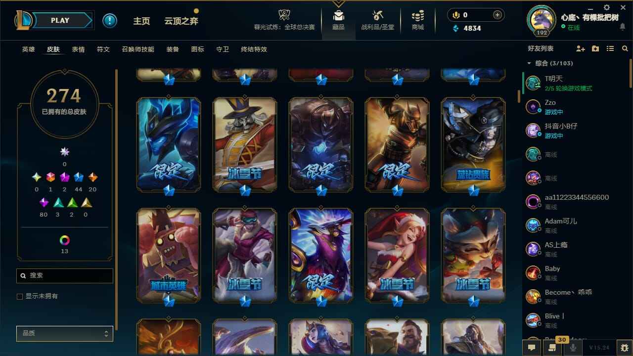 【184378】[14896683]LM421/黑色玫瑰/单双排段位:荣耀黄金 英雄数量:139 皮肤数量:274 炫彩数量:18 臻彩数量:1 神话数量:2 云顶神话数量:0 游戏点卷:0 神话精粹:70 蓝色精萃:4834 橙色精粹:22123 钥匙:0 宝箱:62 【重要头像】爱意绵绵 幼犬沃里克 【重要皮肤】庆典女皇艾尼维亚 玉剑传说舞剑仙 春晖神女拉克丝 胜利之树茂凯 胜利女神奥莉安娜