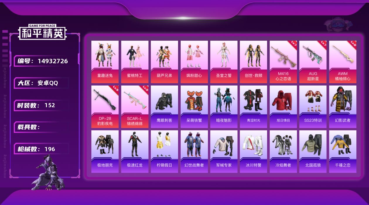 游戏区服:和平精英 / 安卓系统 / QQ账号