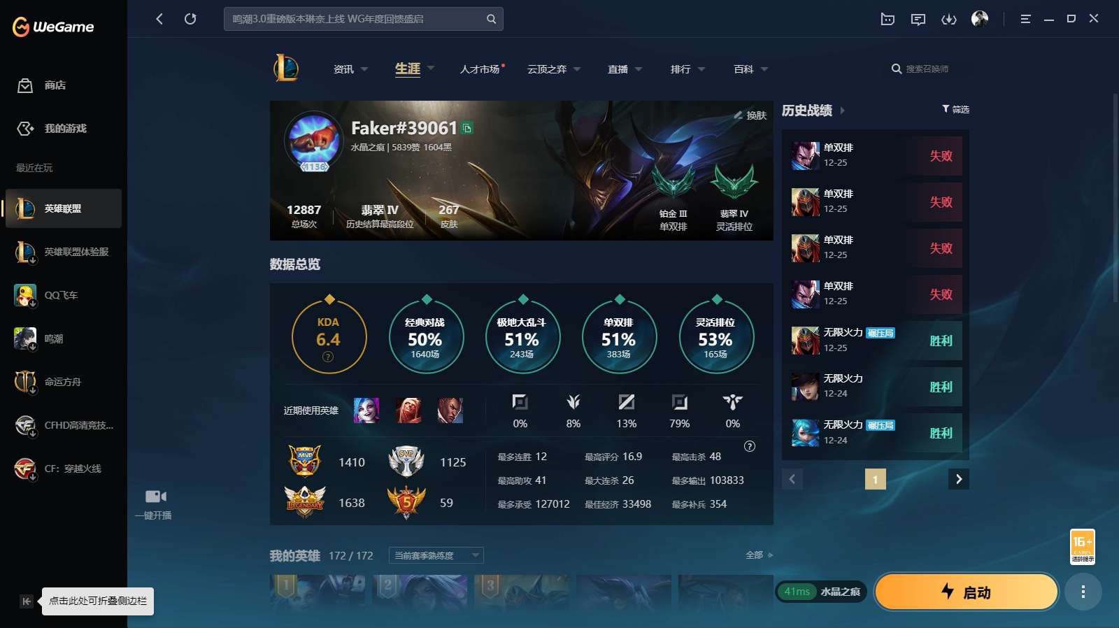 游戏区服:英雄联盟 / 电信 / 水晶之痕
