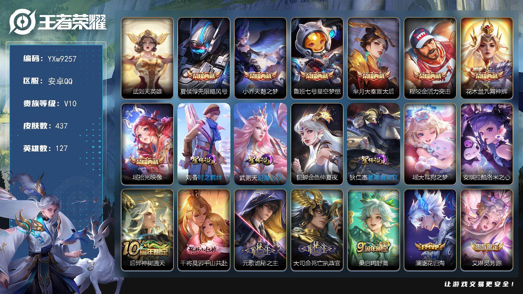 【195955】【可二次】【QQ(安卓)】化身博士 星界游侠 进击墨子号 水晶猎龙者 花朝如约 原初探秘者 命运角斗场 挚爱花嫁 烛龙 天鹅之梦 仲夏夜之梦 大秦宣太后 龙腾万里 缤纷独角兽 灼热之刃 万华元夜 东海龙王 三太子 孤猎 超能战警 牛运亨通 醍醐杖 英喵野望 圆桌骑士 危途狂花 修竹墨客 狮心王 炼金王 时之恋人 电玩小子 魅力维加斯 维京掠夺者 久胜战神 狮舞东方 瑞麟志 龙鼓争