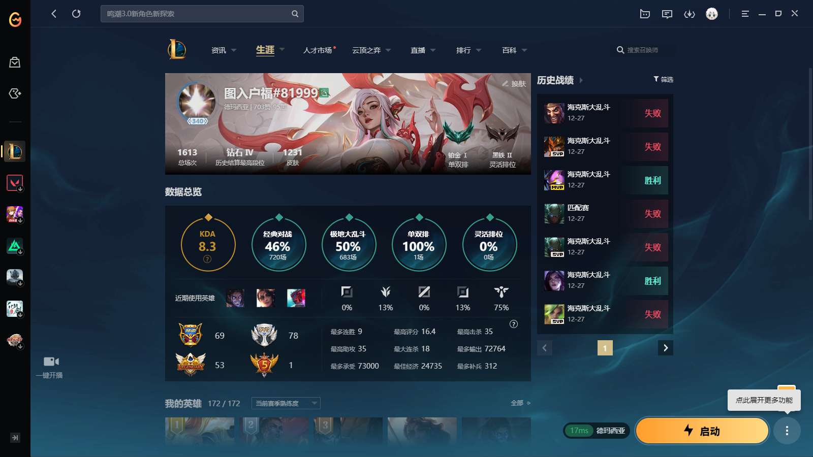 游戏区服:英雄联盟 / 网通 / 德玛西亚
