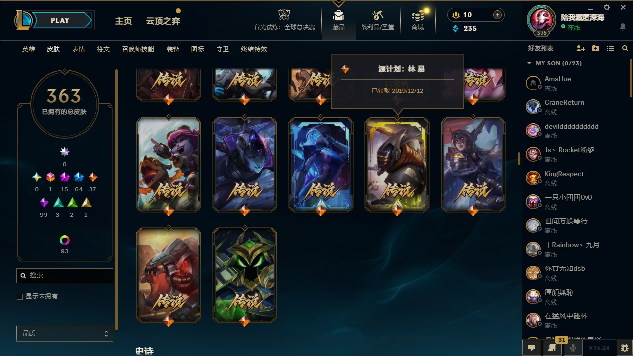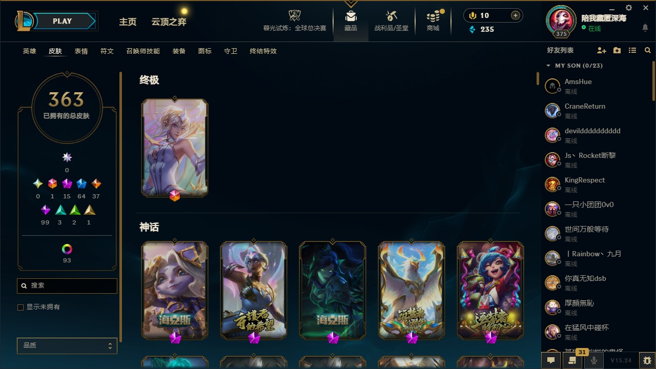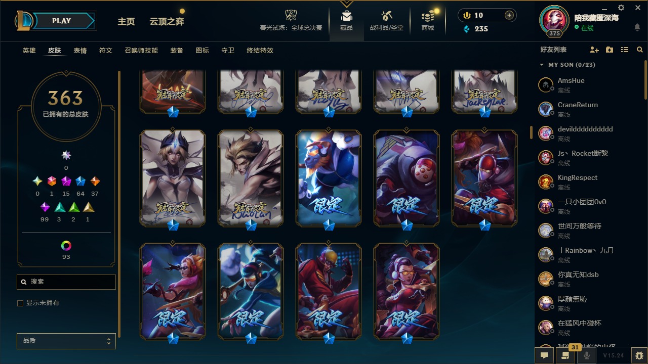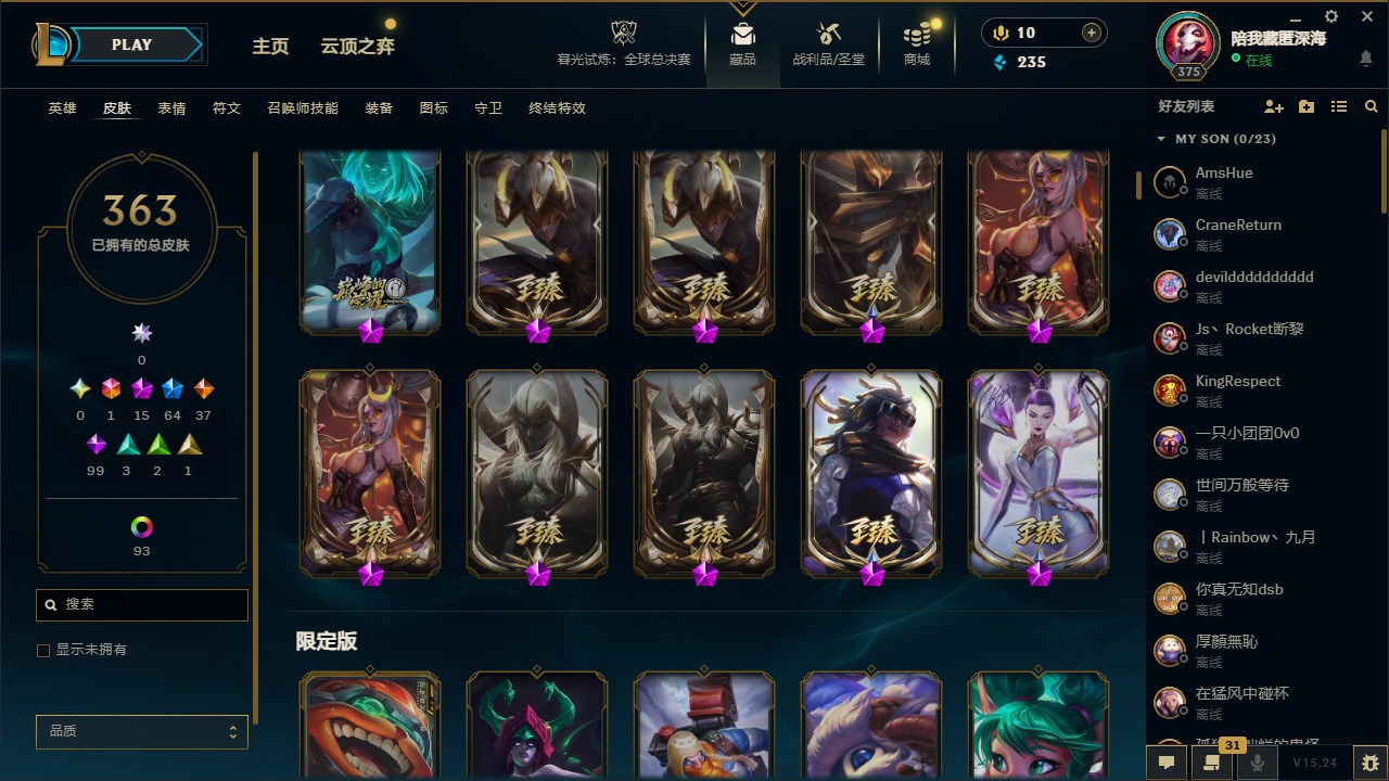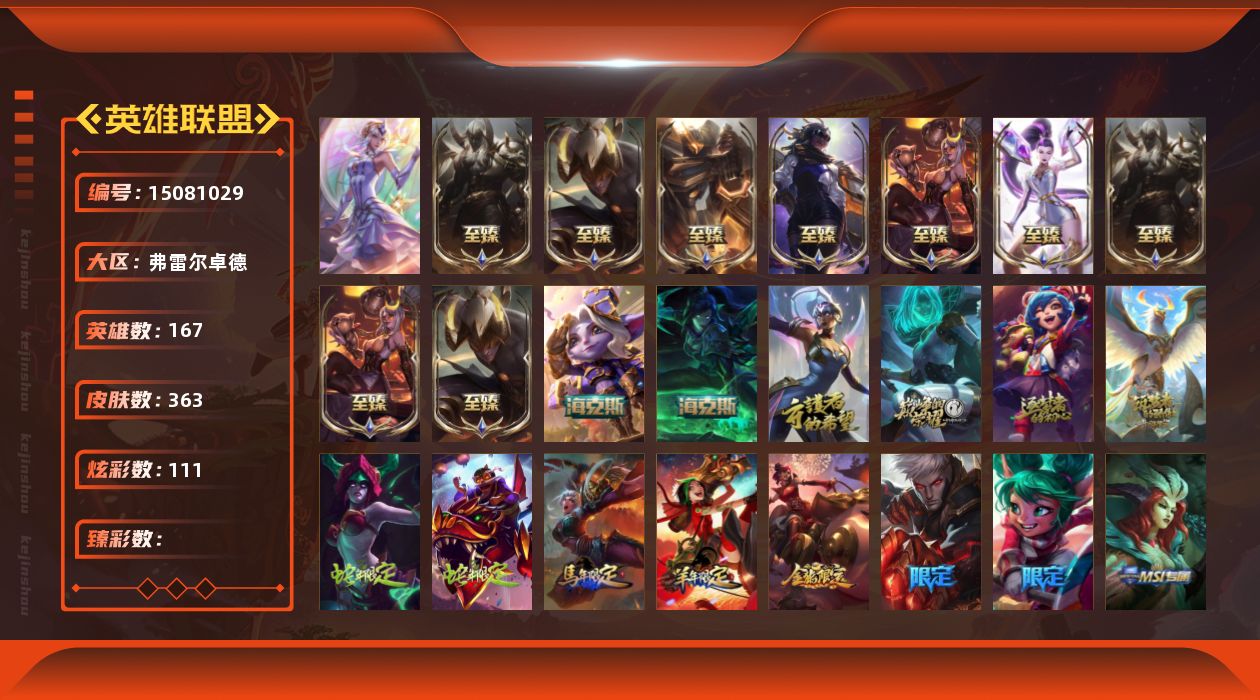 【215293】1终极 15神话 64限定 37传说 99史诗 363皮肤 111炫彩 167英雄 可二次 可修改实名 【至臻】至臻 黑夜使者 李青(2022),至臻 K/DA ALL OUT卡莎,至臻 王国机神玄武 盖伦,至臻 黑夜使者 李青,至臻 腥红之月 亚托克斯(2022),至臻 腥红之月 亚托克斯,至臻 烈焰美人 薇恩(2022),至臻 烈焰美人 薇恩,至臻 真实伤害 赛娜 【海克斯】