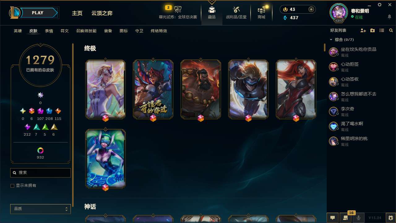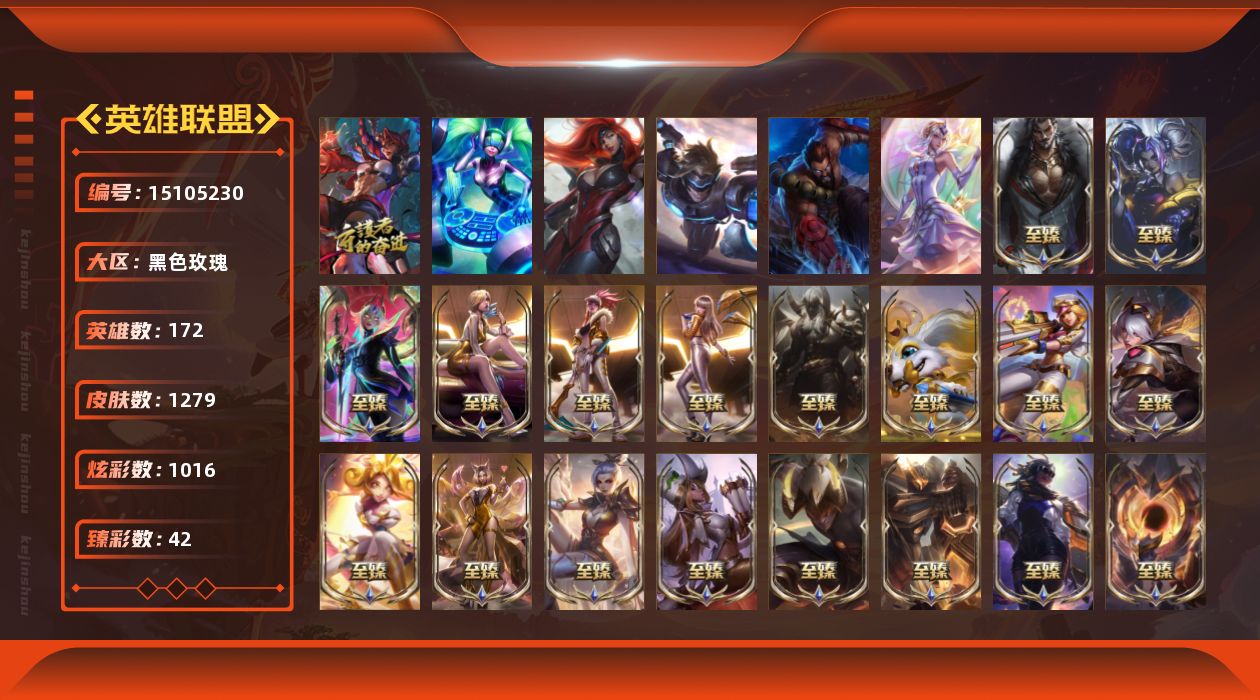 【220063】[15105230]t31921【黑色玫瑰】原皮龙瞎 1279皮肤 1016炫彩 42臻彩 107神话/208限定/115传说/172英雄 账号等级:1317 云顶神话:7 单双排段位:翡翠 【重要头像】云顶战斗学院伊泽瑞尔 云顶古琴娑娜 爱情鸽 爱情之歌 心型钥匙 觅心游侠卢锡安 觅心之翼奎因 冬境仙灵索拉卡 大家伙 我麦是开的么 万圣节卡特琳娜 击拳 救生圈 星守金克丝炫彩