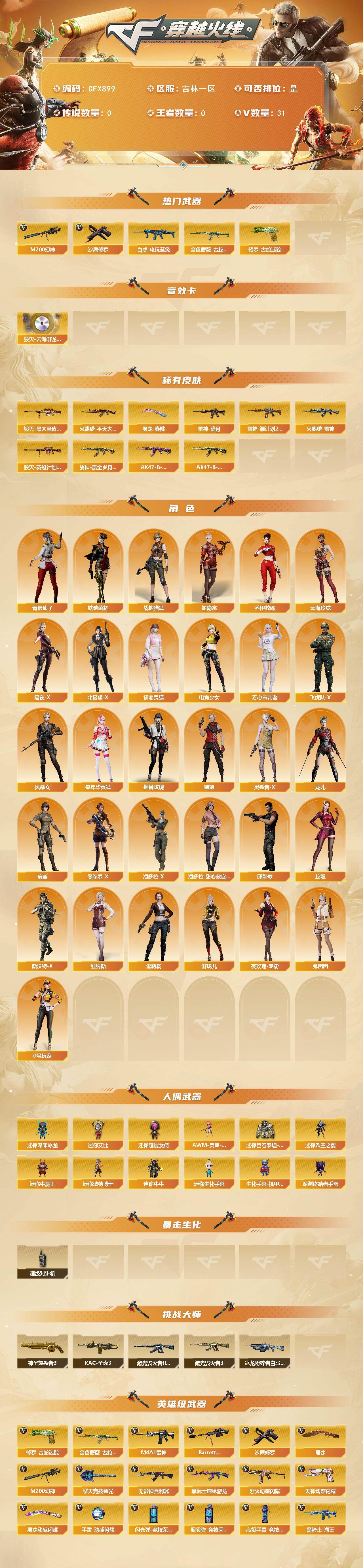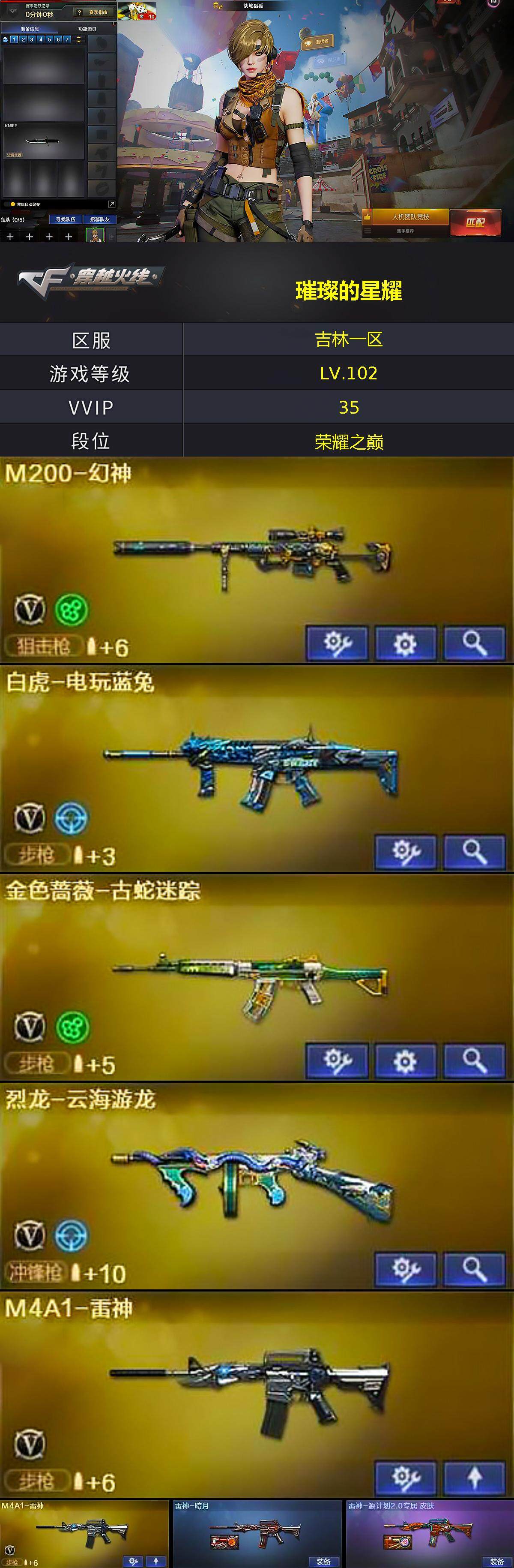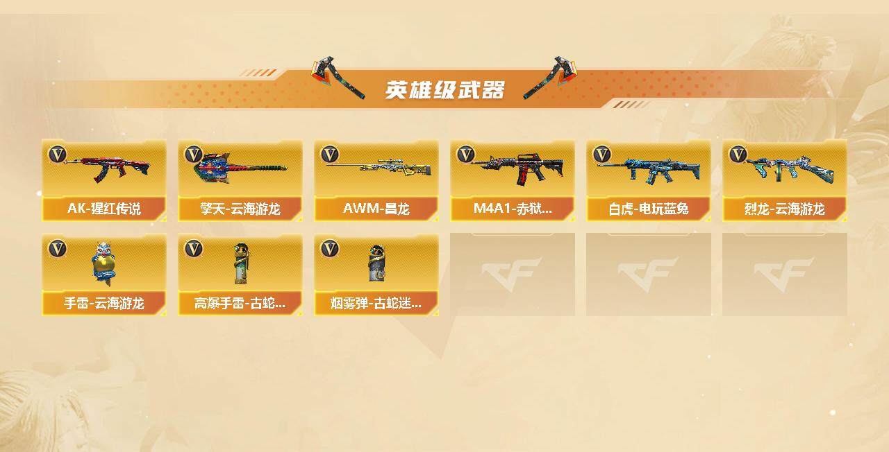 【234028】【234028】【CFX899】30V/102级/荣耀元首/1英雄/M200-幻神/金色蔷薇-古蛇迷踪/修罗-古蛇迷踪/白虎-电玩蓝兔/沙鹰-
