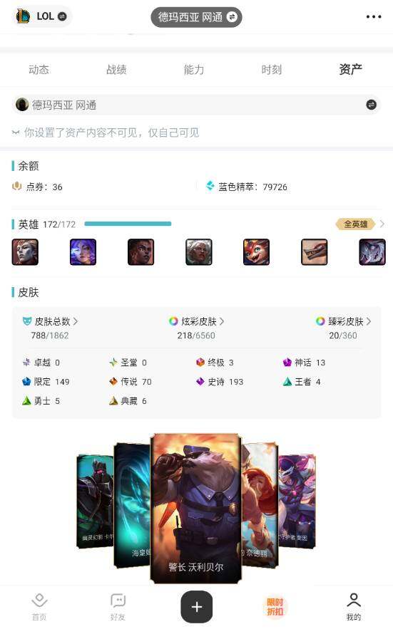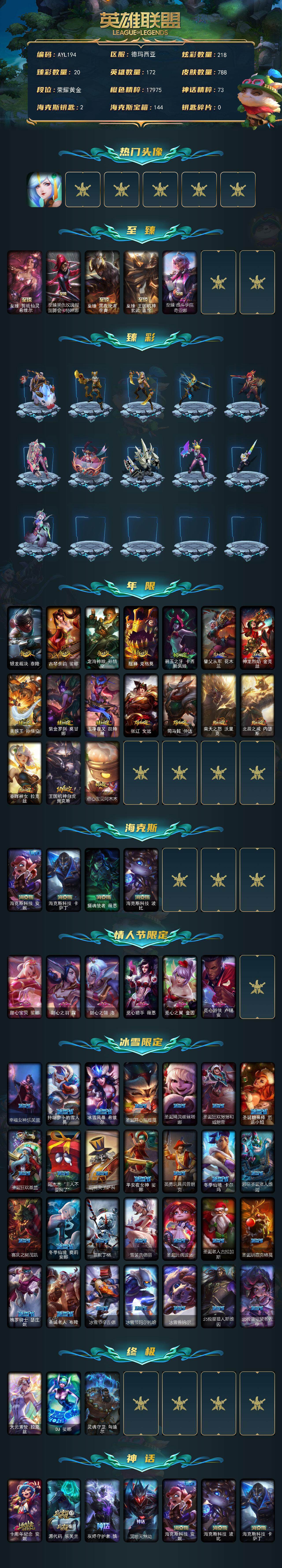 【234212】[15191049]【特价出售/店主推荐】黄金段位-172英雄-788皮肤-218炫彩-3终极-13神话-149限定-70传说-193史诗【热门头像】:春晖神女头像【至臻皮肤】:至臻剪纸仙灵希维尔,至臻黑色玫瑰假面舞会卡特琳娜,至臻黑夜使者李青,至臻王国机神玄武盖伦,至臻战斗学院奇亚娜【臻彩皮肤】:春晖神女拉克丝流风回雪,天龙之子卡莎飞龙乘云,无畏骑士瑟庄妮赤子初心,替父从军花木