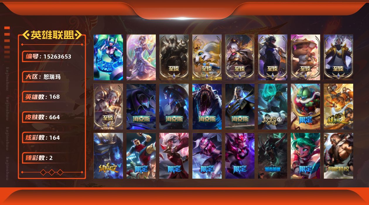【247804】[15263653]t32421 皇冠账号【恕瑞玛】664皮肤 164炫彩 2臻彩 14神话/98限定/54传说/168英雄 账号等级:518 【重要头像】我麦是开的么 KDA萨勒芬妮 沐浴震惊 可爱安妮 披萨鸡 送披萨的小姐姐希维尔 至臻女帝黛安娜 至臻灵魂莲华提莫 【重要皮肤】女帝黛安娜至臻 真实伤害亚索至臻 真实伤害赛娜至臻 灵魂莲华提莫至臻 源计划正义艾瑞莉娅至臻 绒毛菲