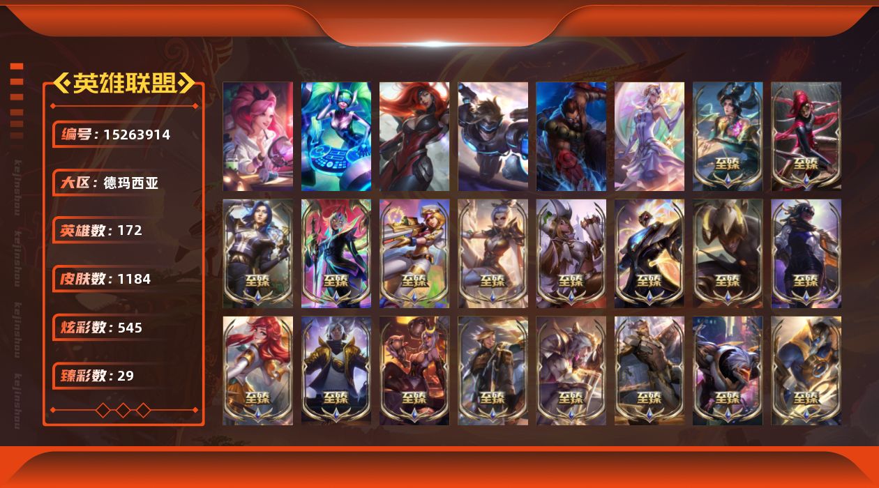 【247842】[15263914]t32422【德玛西亚】黑龙瞎 绿龙瞎 1184皮肤 545炫彩 29臻彩 40神话/226限定/110传说/172英雄 账号等级:765 云顶神话:1 【重要头像】云顶战斗学院伊泽瑞尔 至爱的鹿 爱意绵绵 爱情之歌 觅心游侠卢锡安 觅心之翼奎因 雪花 萨勒芬妮超级巨星 萨勒芬妮独立音乐人 击拳 救生圈 KDA卡莎BAEST KDA萨勒芬妮 幼犬内瑟斯 沐浴震
