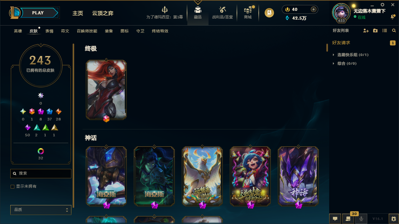 【306789】[15577882]t34163 皇冠号【卡拉曼达】243皮肤 58炫彩 9臻彩 8神话/37限定/28传说/172英雄 账号等级:633【重要头像】爱情之歌 万圣节卡特琳娜 可爱安妮 披萨鸡 【重要皮肤】魅惑女巫莫甘娜至臻 未来战士卢锡安至臻 海克斯科技阿利斯塔 水晶掠夺者卡兹克 摄魂使者薇恩 胜利女神娑娜 胜利之王泰达米尔 胜利巨口克格莫 荣誉使者玛尔