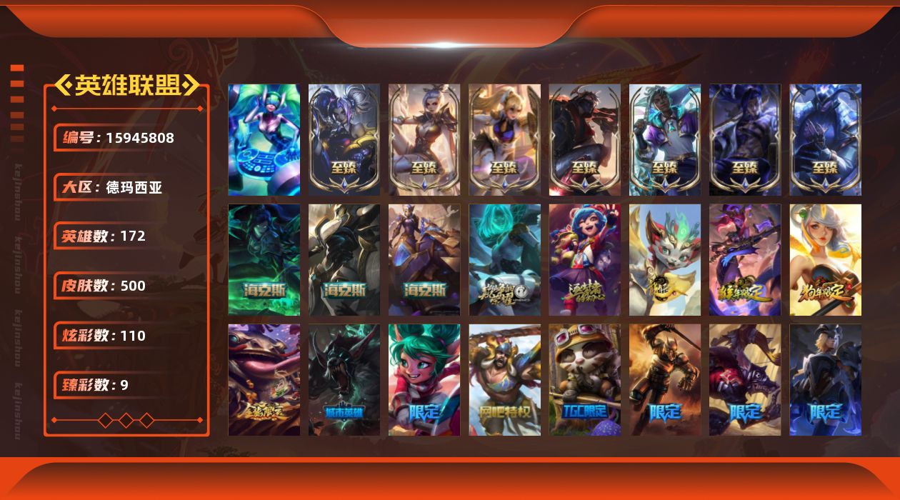 【359452】[15945808]【特价出售/店主推荐】未定级段位-172英雄-500皮肤-110炫彩-1终极-13神话-66限定-47传说-95史诗【珍稀头像】:至爱的鹿头像【热门头像】:爱情之歌头像,爱情鸽头像,银河魔装机神安妮头像,战斗学院拉克丝头像【至臻皮肤】:至臻战斗学院蕾欧娜,至臻西部魔影猎天使恶魔泰隆,至臻玉剑传说武剑仙锐雯,至臻墨之影武者亚索,至臻魔域梦魇泽丽,至臻星之守护者艾