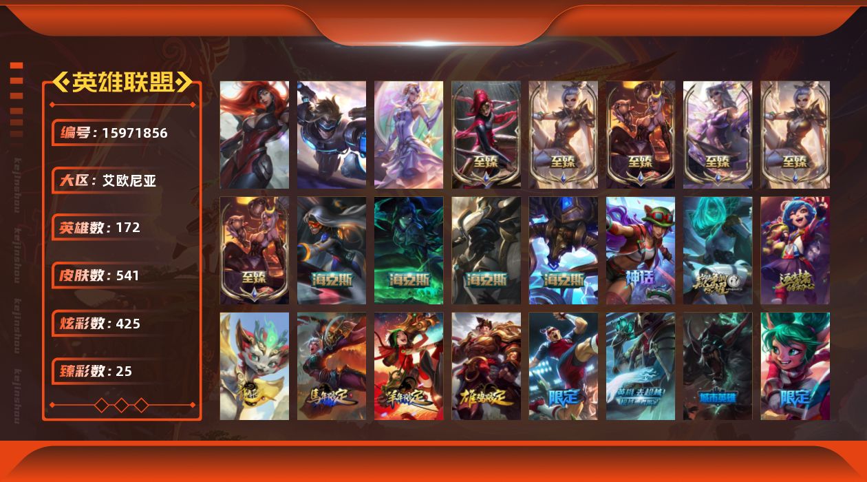 【363035】[15971856]可二次【特价出售/店主推荐】未定级段位-172英雄-541皮肤-425炫彩-3终极-14神话-93限定-55传说-125史诗【热门头像】:玉剑传说舞剑仙头像,KDA阿卡丽头像【至臻皮肤】:至臻花仙使者卡特琳娜,至臻黑色玫瑰假面舞会卡特琳娜,至臻烈焰美人薇恩,至臻烈焰美人薇恩(2022),至臻玉剑传说武剑仙锐雯,至臻玉剑传说武剑仙(2022)【臻彩皮肤】:神龙烈