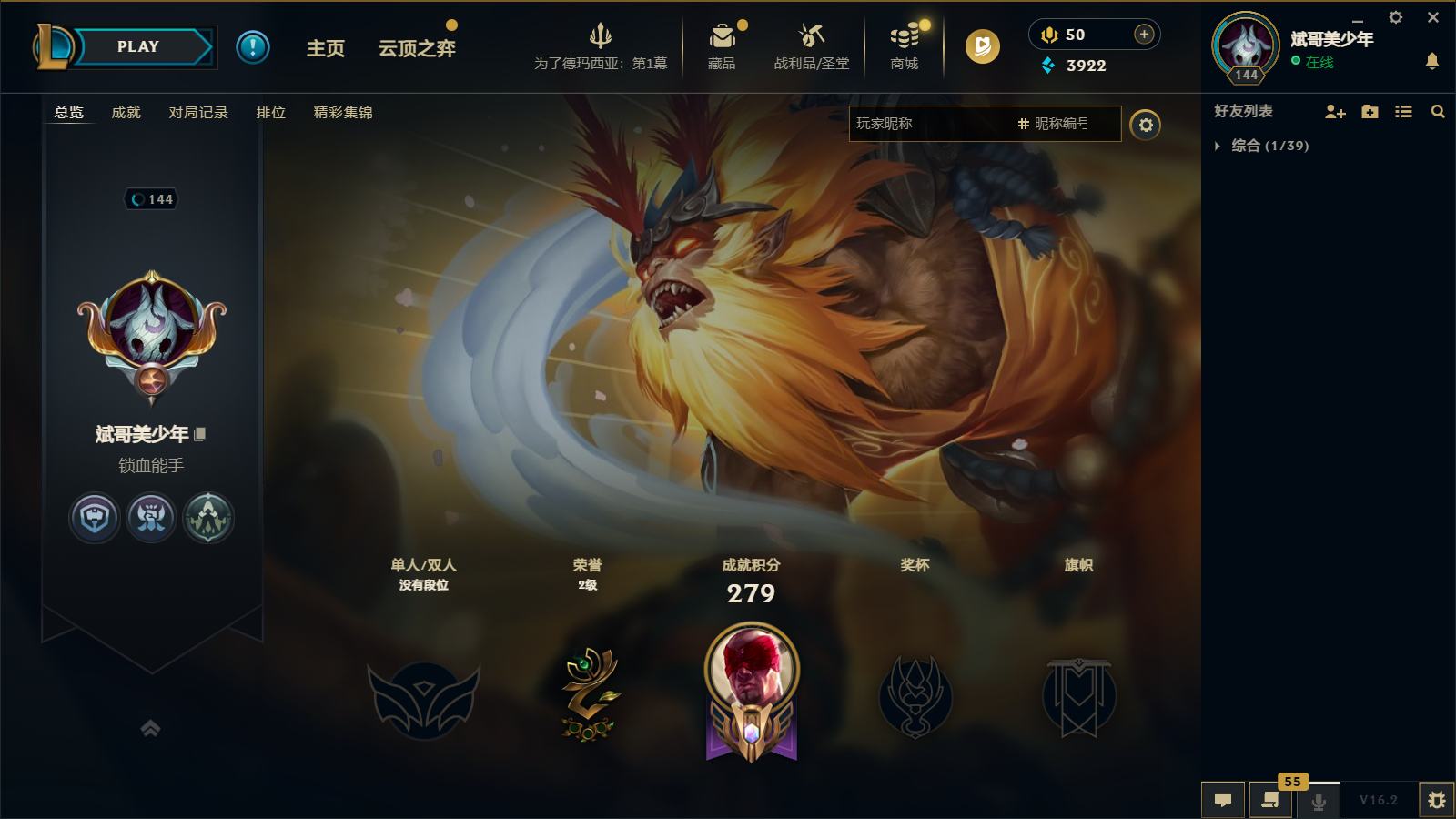 游戏区服:英雄联盟 / 电信 / 征服之海