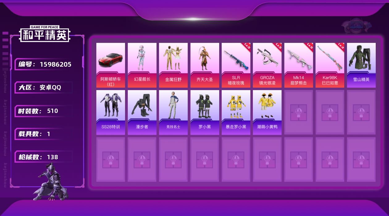游戏区服:和平精英 / 安卓系统 / QQ账号