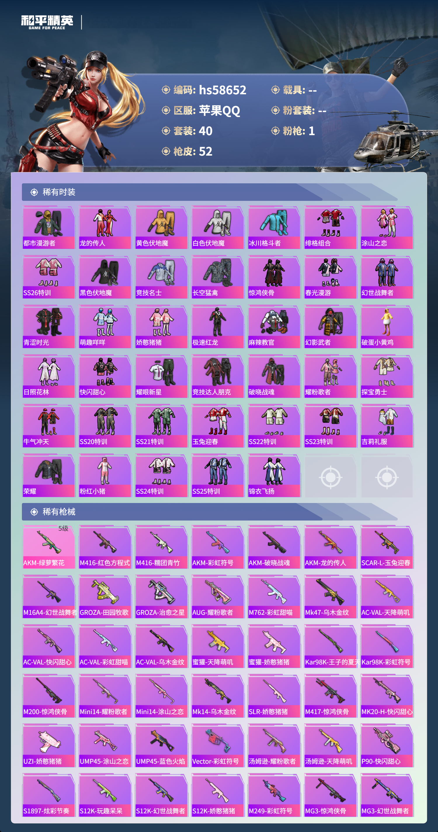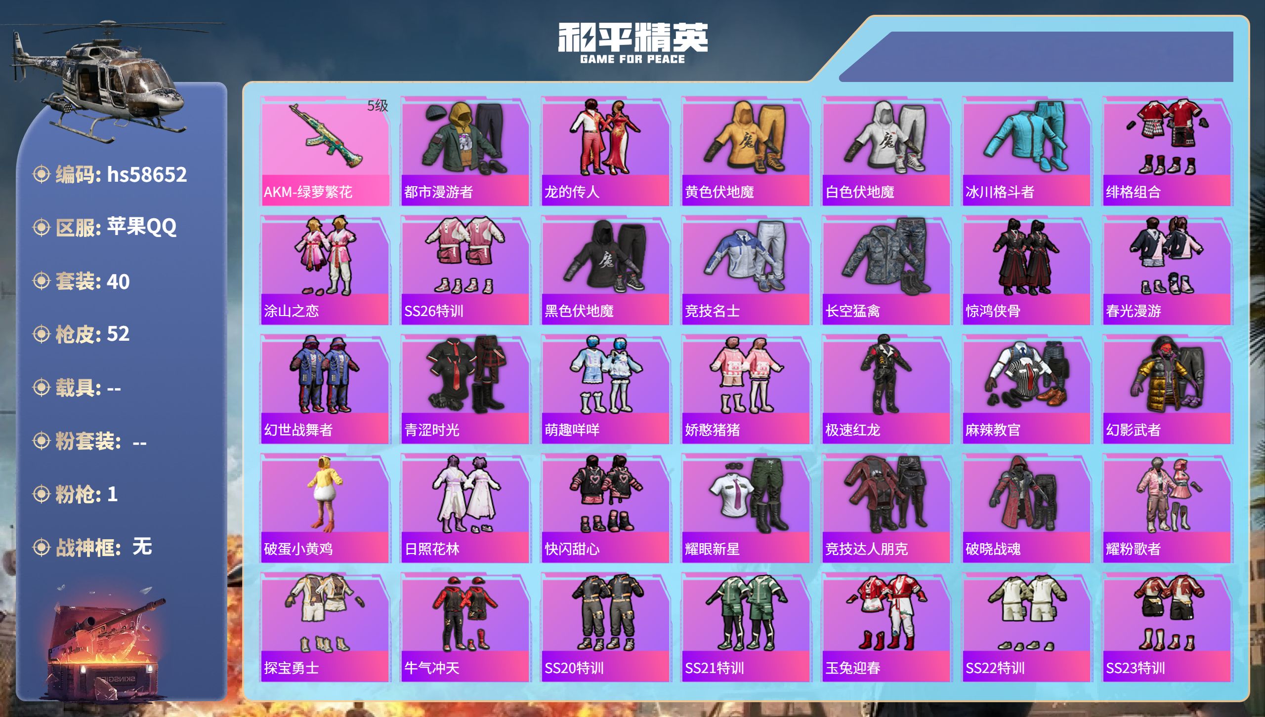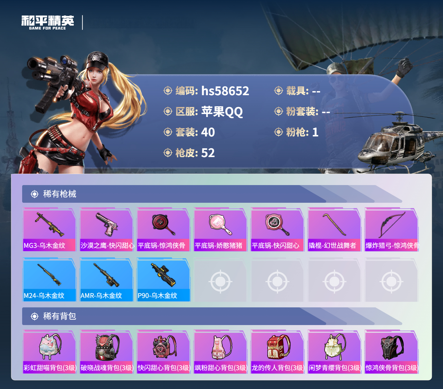 游戏区服:和平精英 / 苹果系统 / QQ帐号