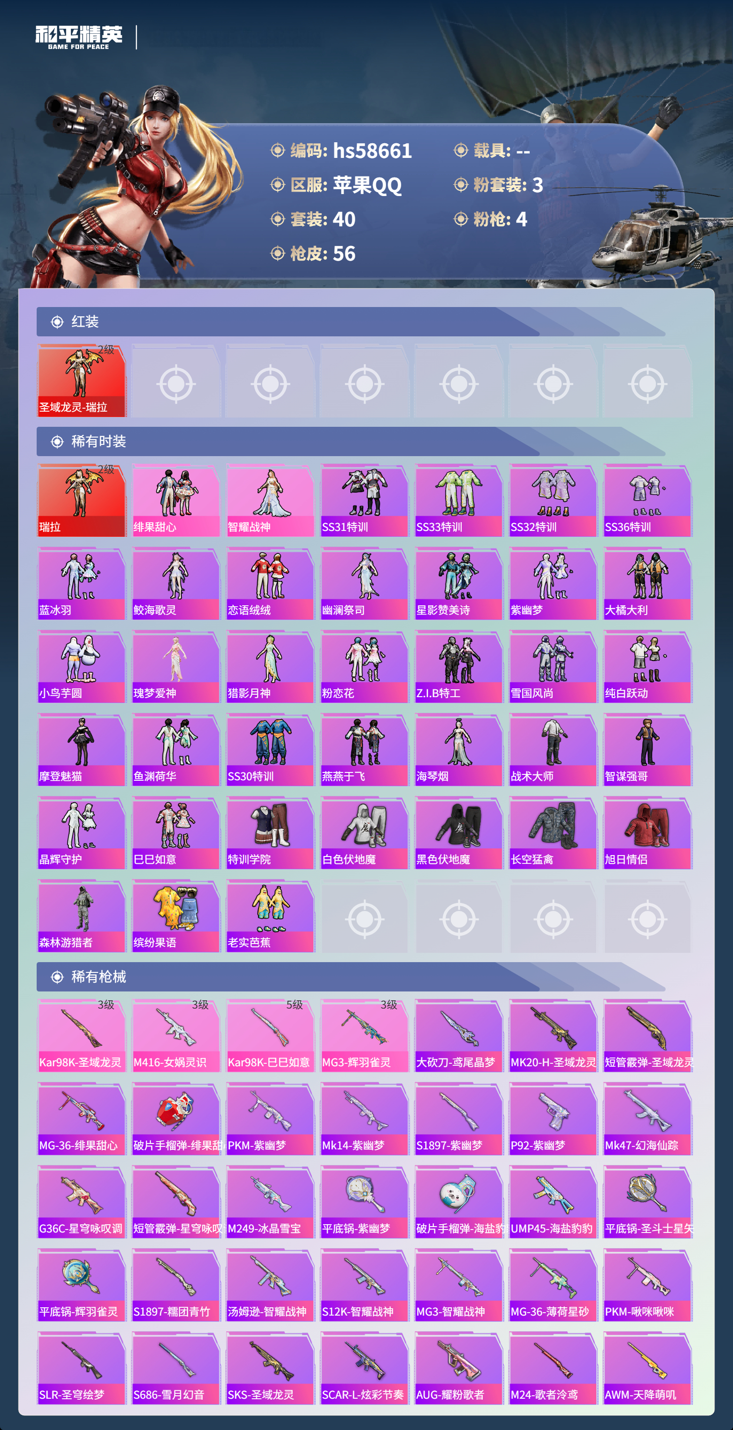 游戏区服:和平精英 / 苹果系统 / QQ帐号