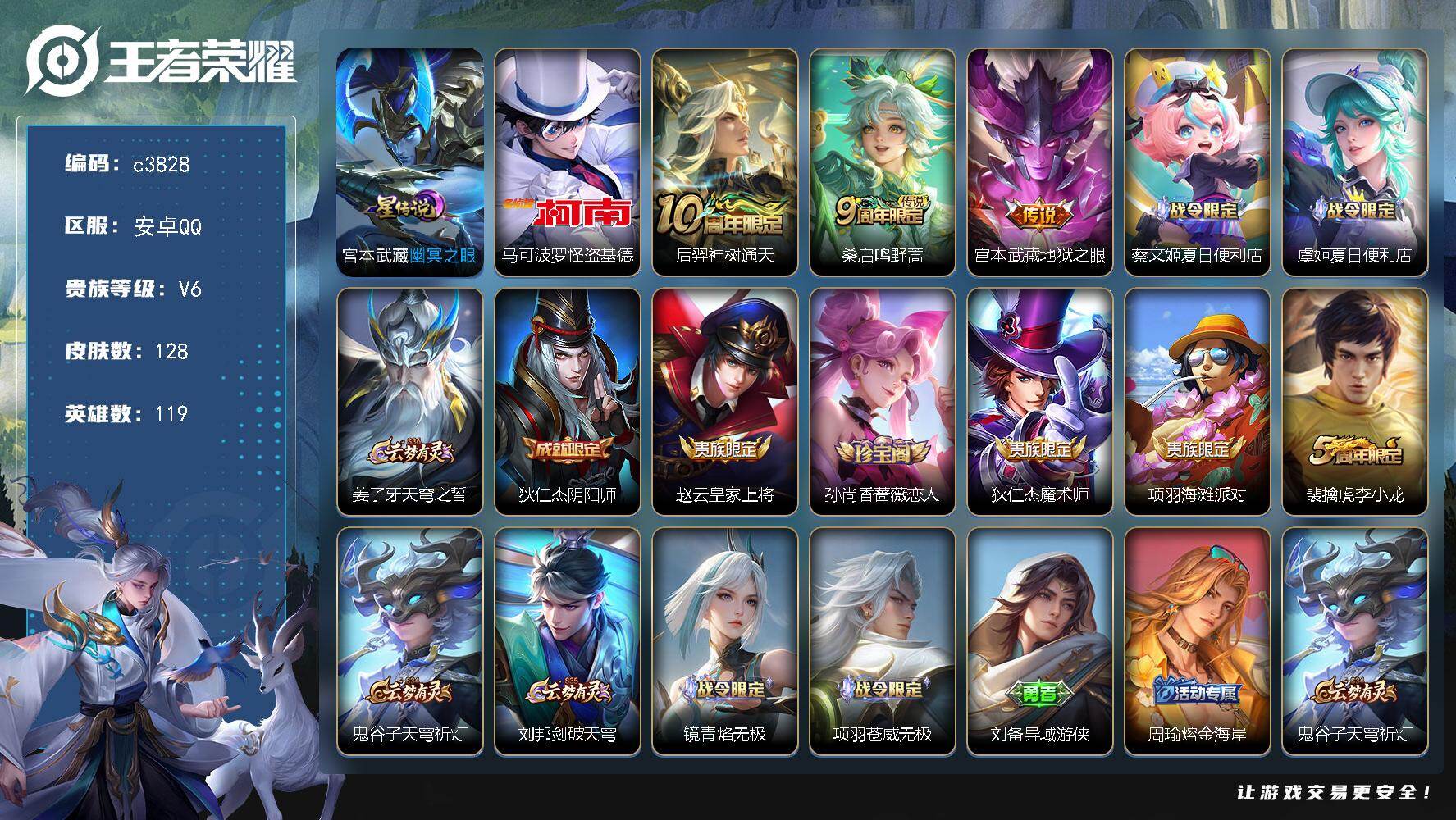 游戏区服:王者荣耀 / 安卓系统 / QQ账号