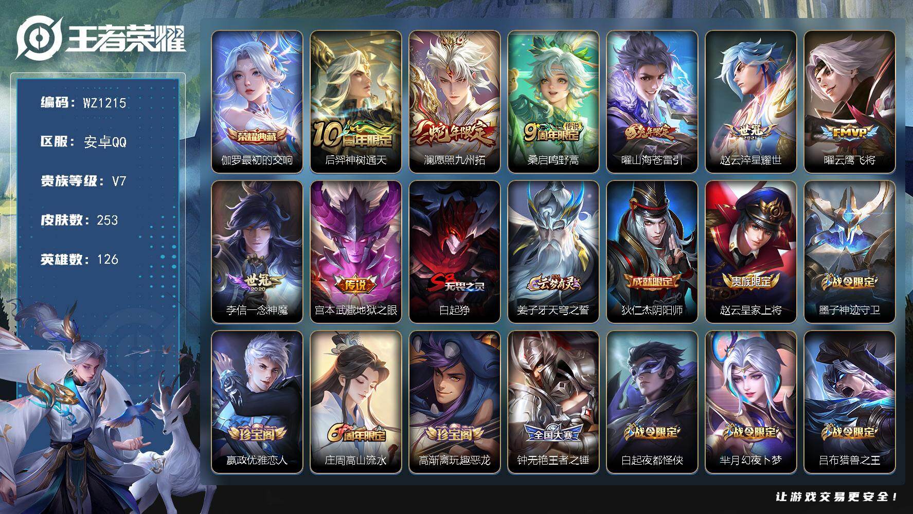 游戏区服:王者荣耀 / 安卓系统 / QQ账号