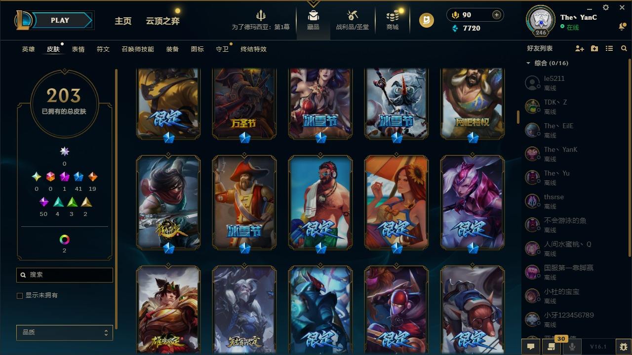 【376339】[16071536]1神话 41限定 19传说 50史诗 203皮肤 4炫彩 168英雄 可二次 可修改实名 【情人节限定】觅心魔灵 奥利安娜,觅心游侠 卢锡安【冠军限定系列】S3 SKT T1 劫,S4 SSW 图奇,S4 SSW 炼金,S5 SKT T1 阿兹尔,S11 EDG 格雷福斯【冰雪节限定】阿木木:“主人不要我了”,冬季仙境 卡尔玛,胡桃夹子 萨科,魄罗骑士 瑟庄妮