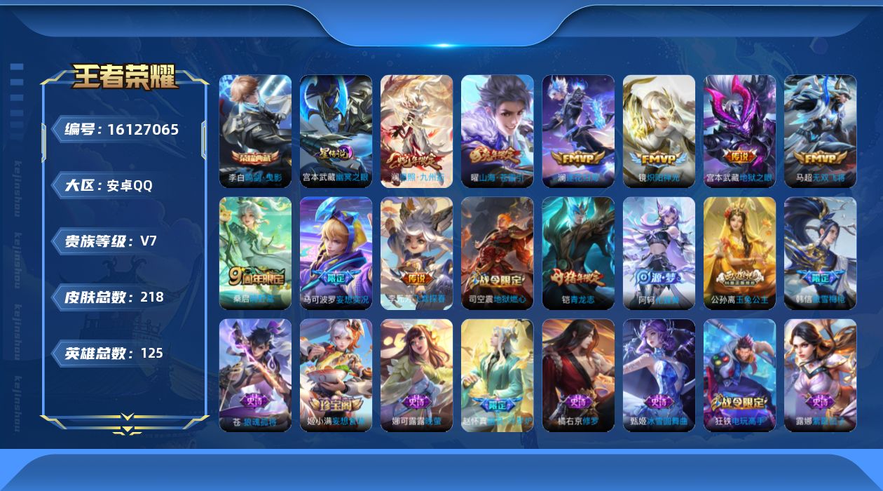 游戏区服:王者荣耀 / 安卓系统 / QQ账号