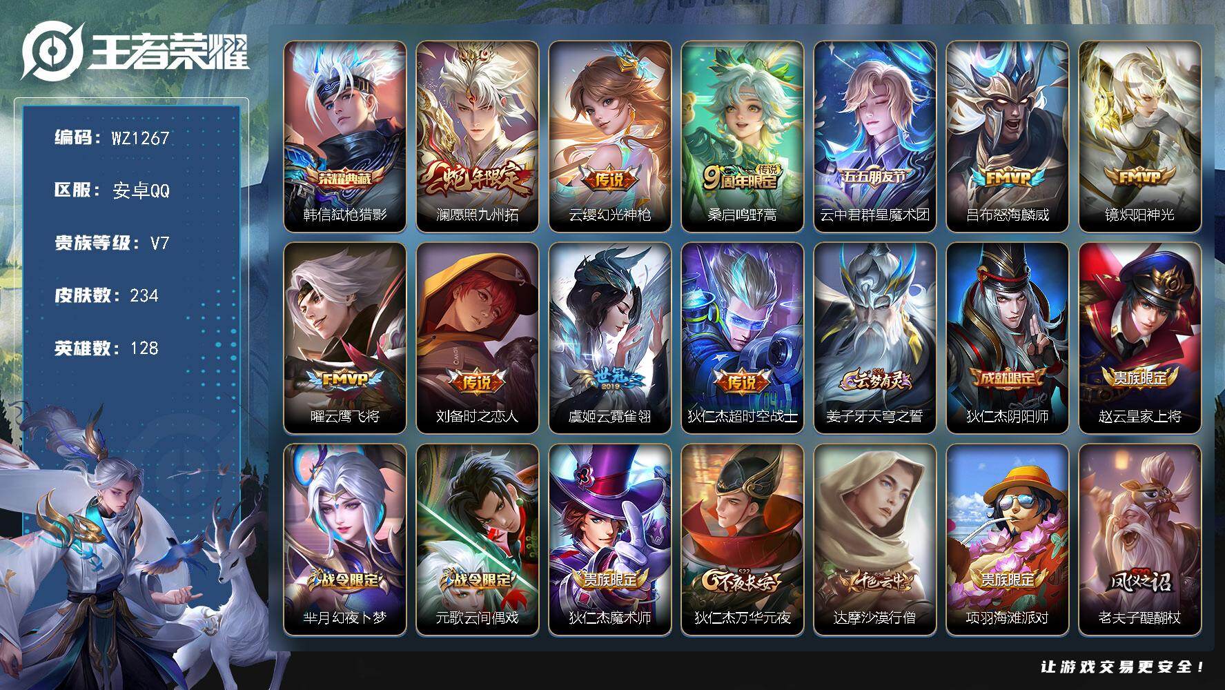 游戏区服:王者荣耀 / 安卓系统 / QQ账号