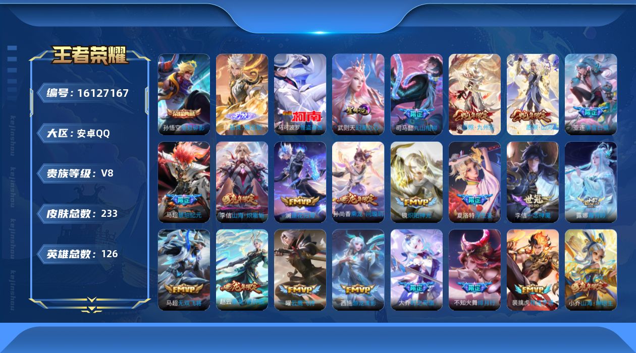 游戏区服:王者荣耀 / 安卓系统 / QQ账号