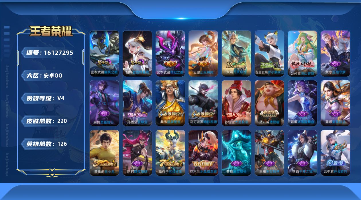 游戏区服:王者荣耀 / 安卓系统 / QQ账号