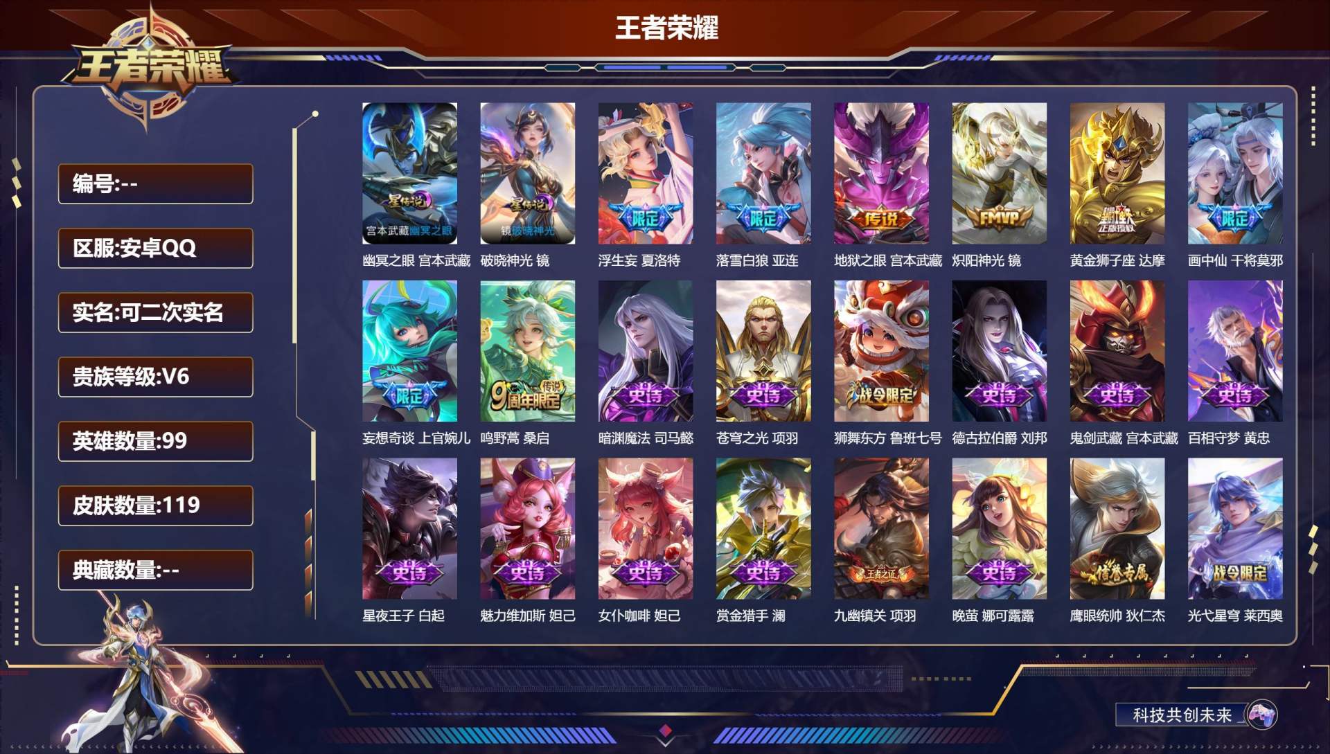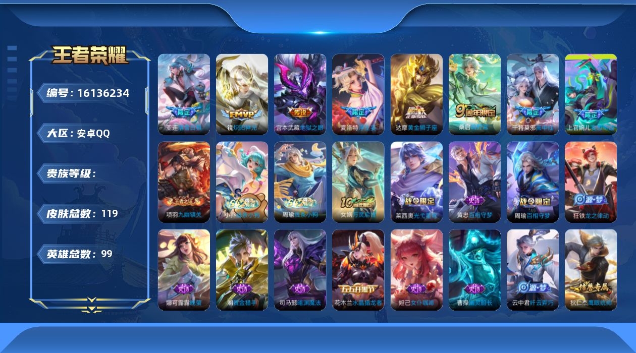 【384941】【可二次】【QQ(安卓)】青焰无极 炽阳神光 画中仙 鹰眼统帅 水晶猎龙者 晚萤 皇家上将 地狱之眼 星夜王子 星界战将 水果甜心 花木兰 落雪白狼 纤云弄巧 幽灵船长 黄金狮子座 娜可露露 浮生妄 茶境仙 魔术师 逐浪之夏 苍穹之光 冰冠公主 特工魅影 女仆咖啡 德古拉伯爵 赵云 鬼剑武藏 百里玄策 赏金猎手 桑启 原初追逐者 魅力维加斯 妄想奇谈 破晓神光 孙尚香 狮舞东方