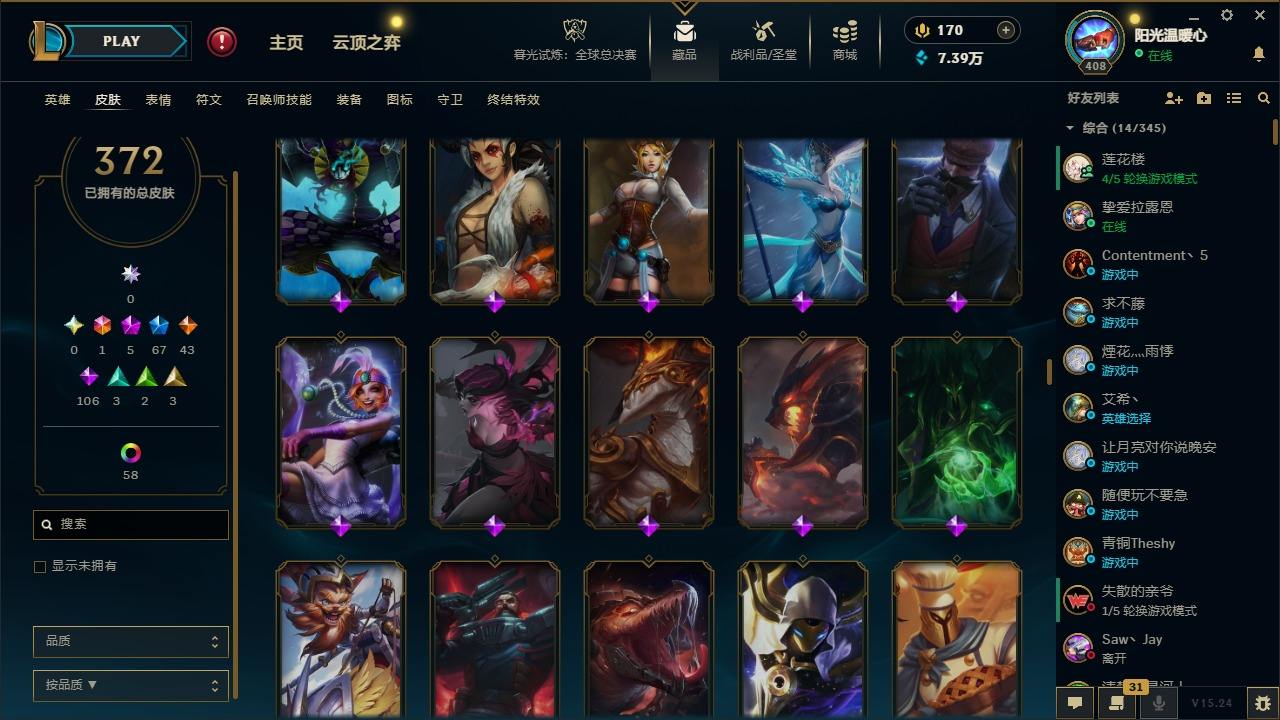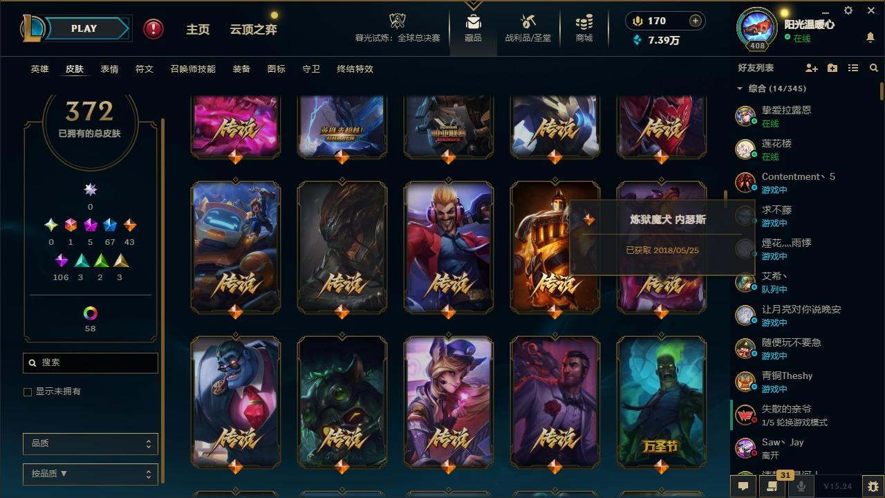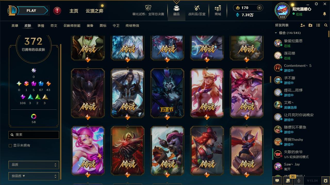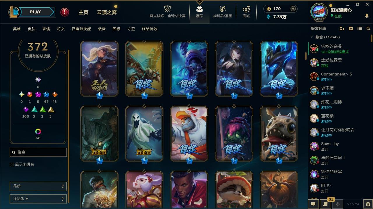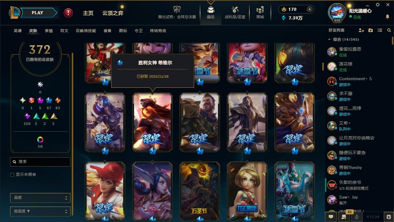 【387820】[16151980]1终极 5神话 67限定 43传说 106史诗 372皮肤 60炫彩 166英雄 可二次 可修改实名 游戏信用分低于350【至臻】:至臻 K/DA 卡莎【海克斯】:海克斯 阿利斯塔【限定】:奥斯曼大帝 普朗克,舞会公主 安妮【情人节限定】:觅心魔灵 奥利安娜,觅心游侠 卢锡安,甜心之羽 霞【赛季限定皮】:胜利女神 希维尔,胜利之树 茂凯,胜利枪神 格雷福斯,胜