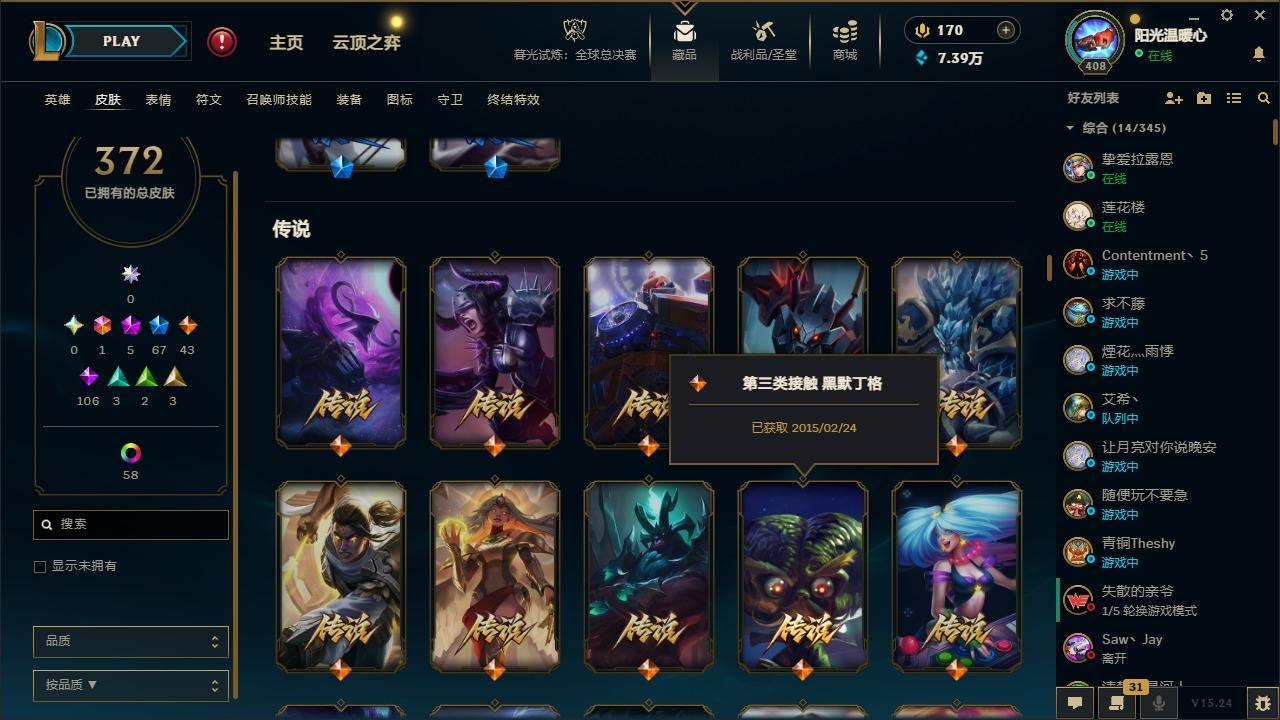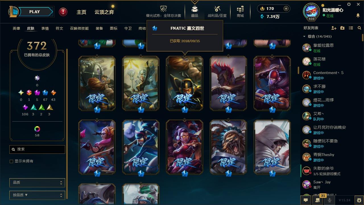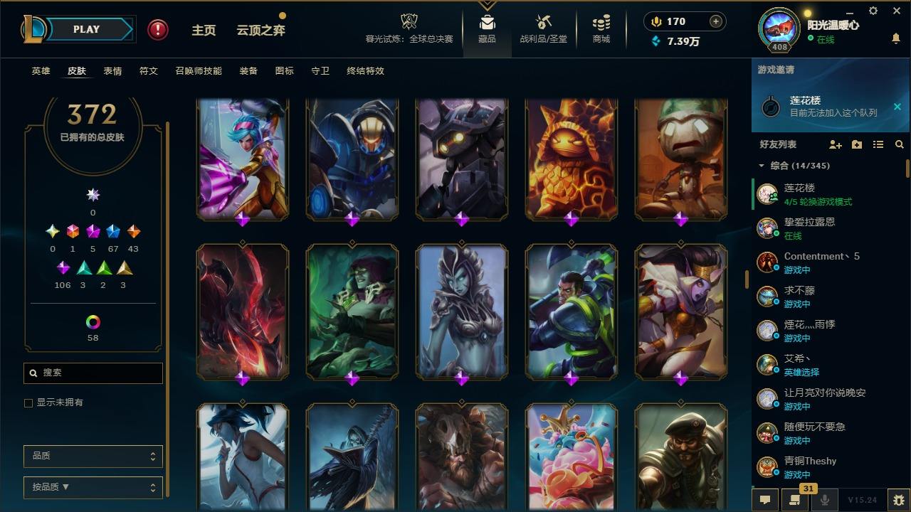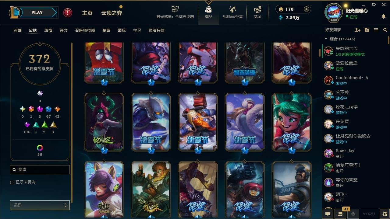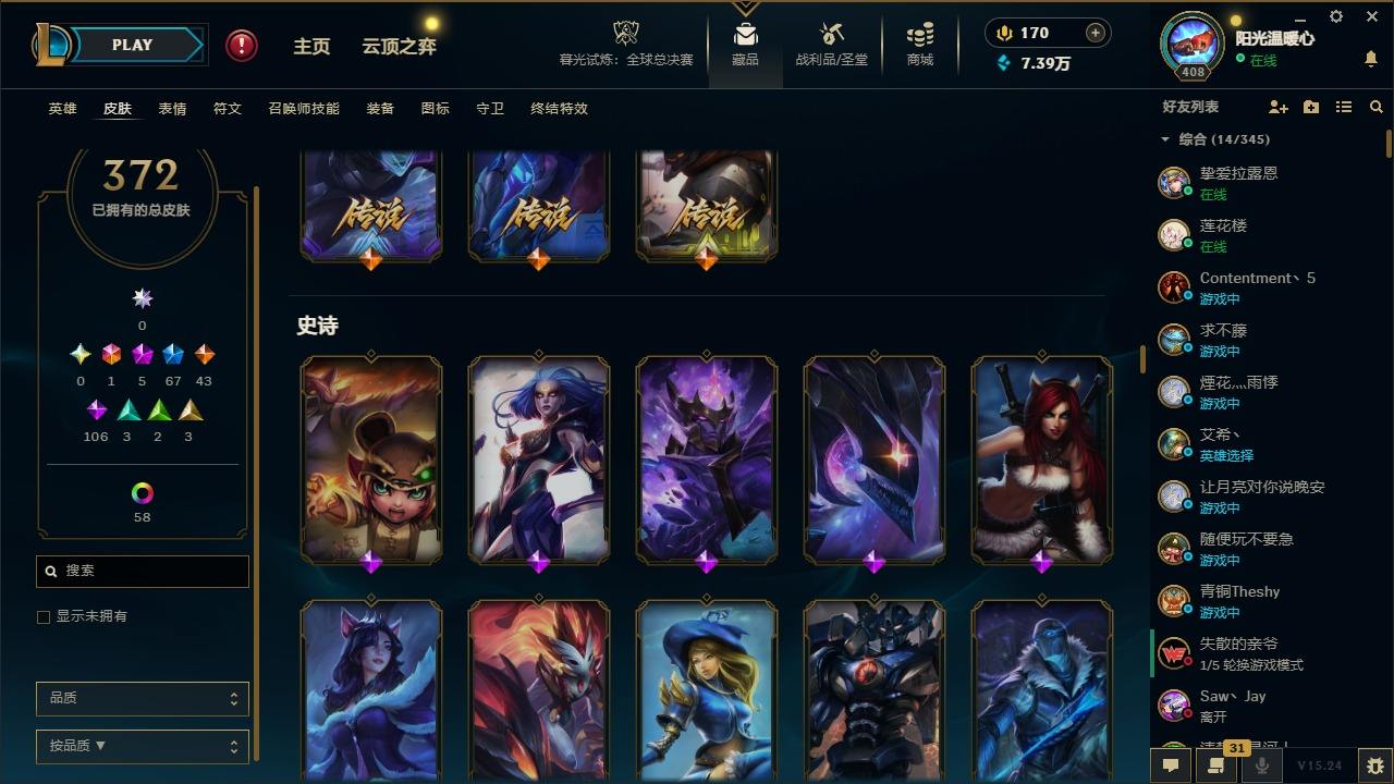【387820】[16151980]1终极 5神话 67限定 43传说 106史诗 372皮肤 60炫彩 166英雄 可二次 可修改实名 游戏信用分低于350【至臻】:至臻 K/DA 卡莎【海克斯】:海克斯 阿利斯塔【限定】:奥斯曼大帝 普朗克,舞会公主 安妮【情人节限定】:觅心魔灵 奥利安娜,觅心游侠 卢锡安,甜心之羽 霞【赛季限定皮】:胜利女神 希维尔,胜利之树 茂凯,胜利枪神 格雷福斯,胜